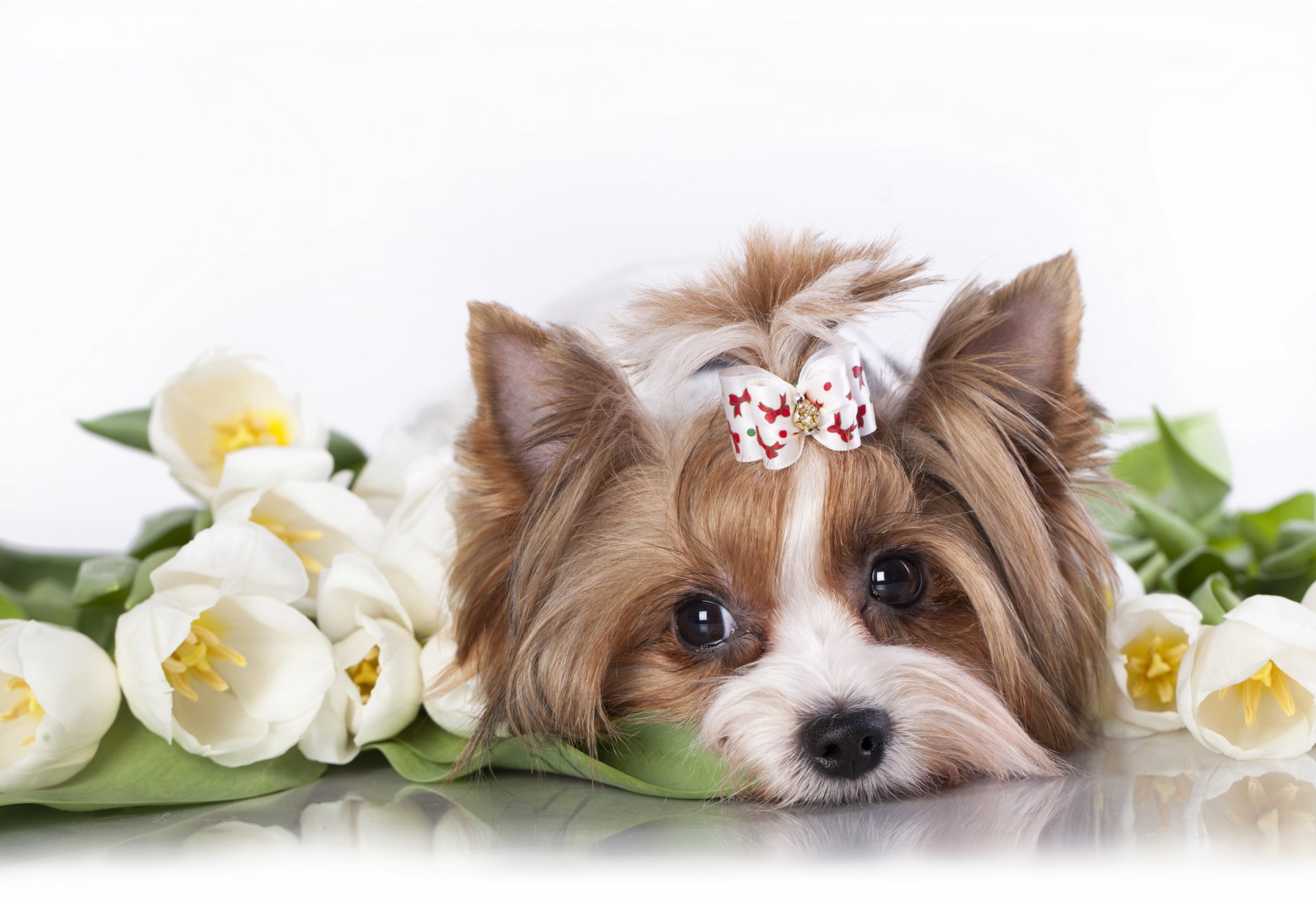 Собачка с цветами в зубах