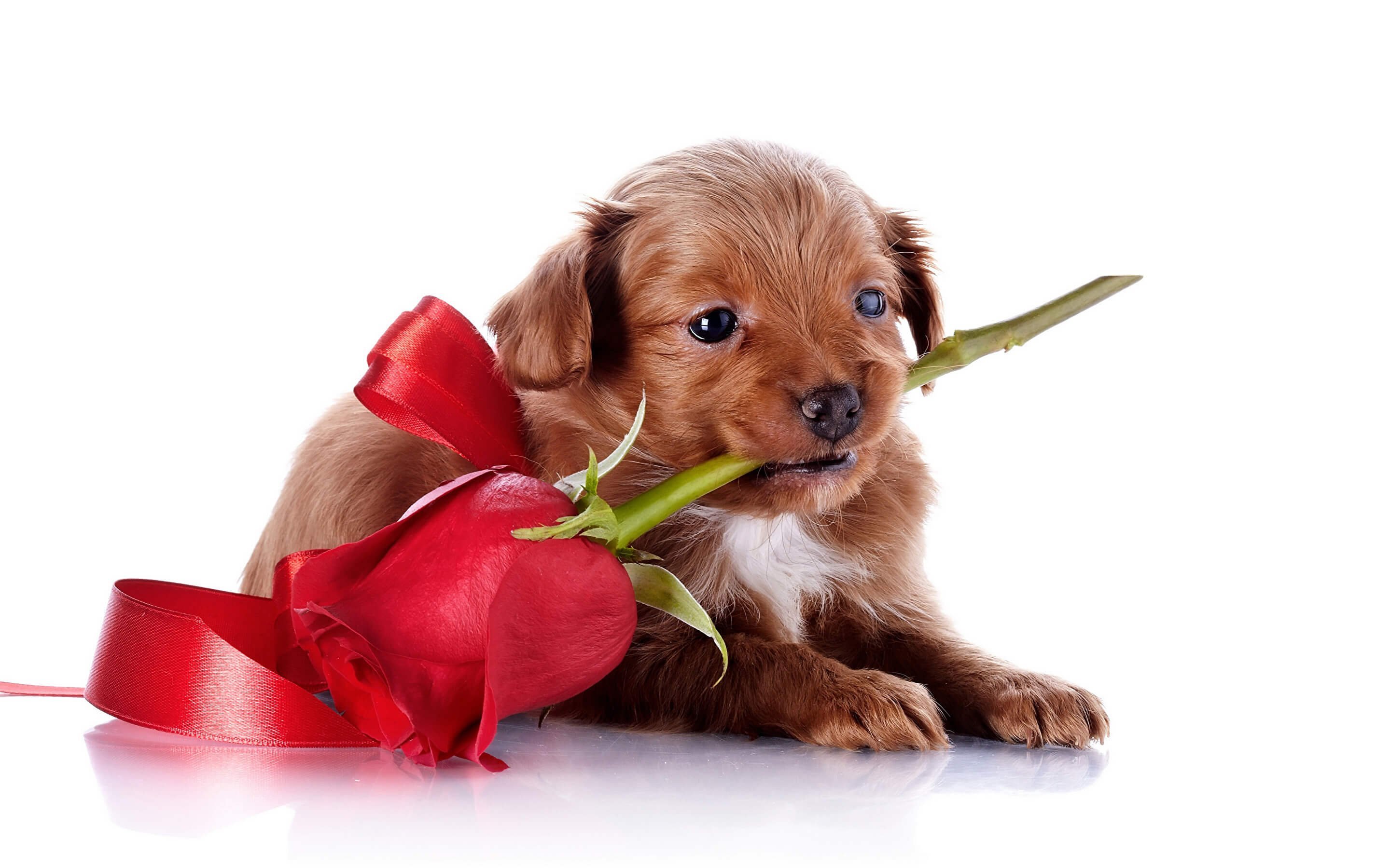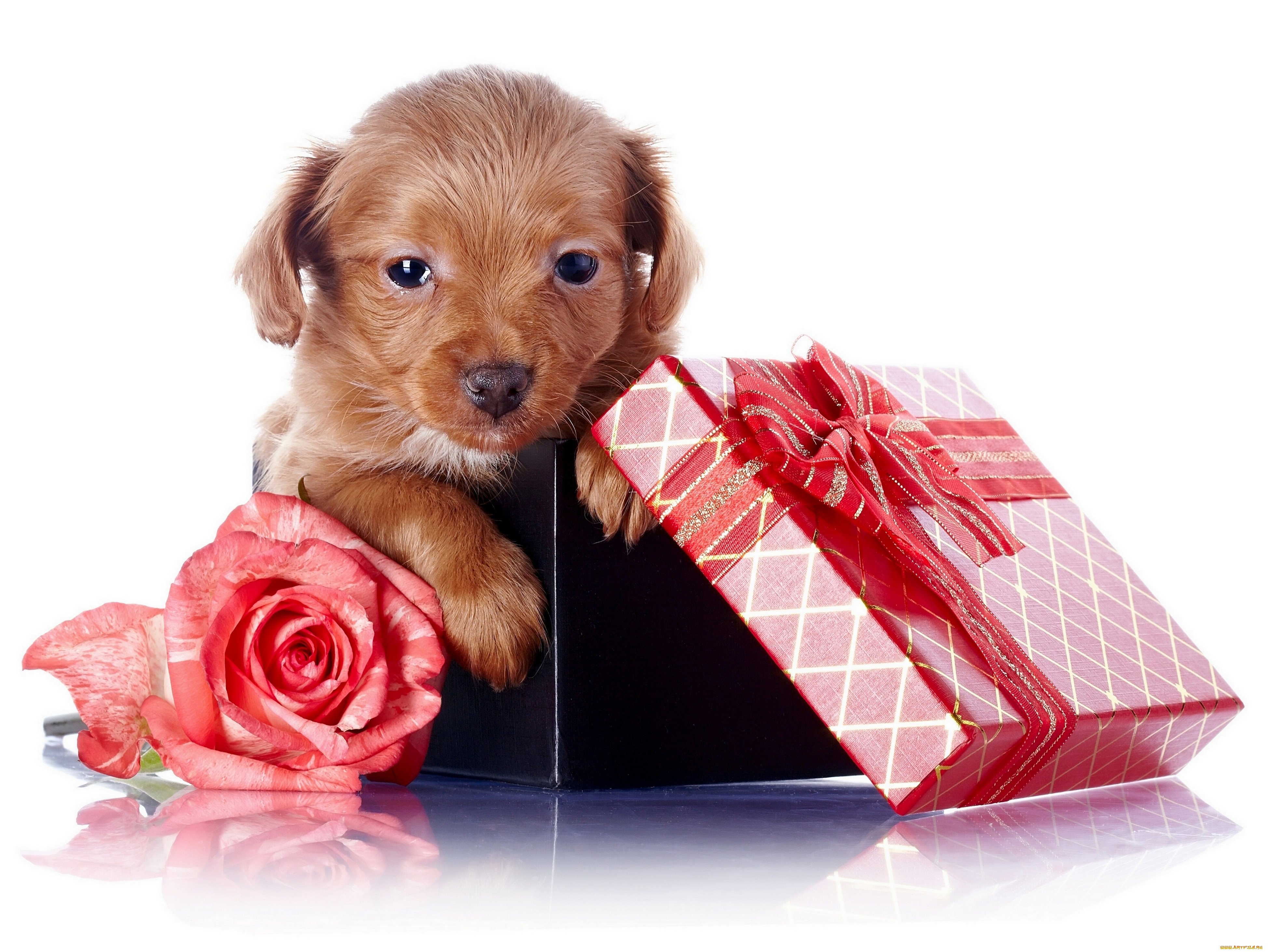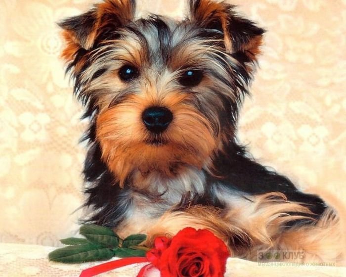 ![Щенок с цветком]()
