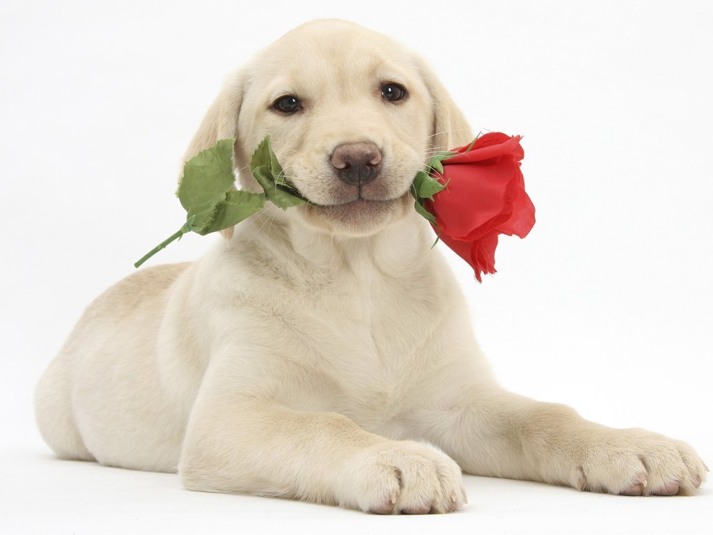 ![Собака с розой]()