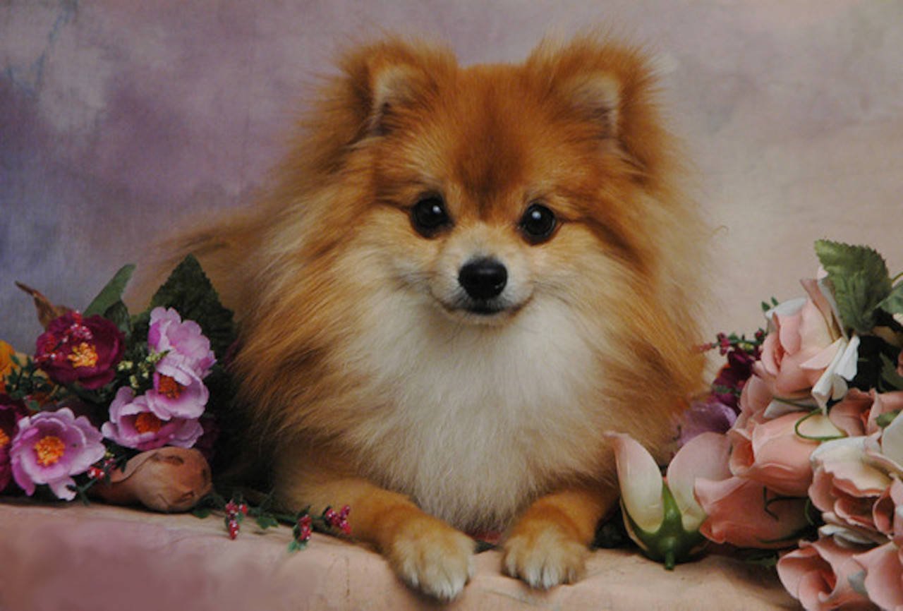 ![Шпиц с цветочком]()