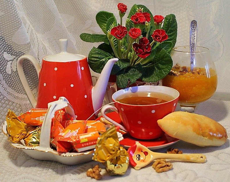 Открытки с добрым утром с чаепитием и хорошим настроением