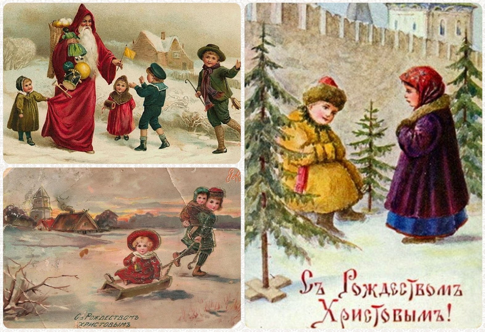 ![Старинные открытки с Рождеством]()