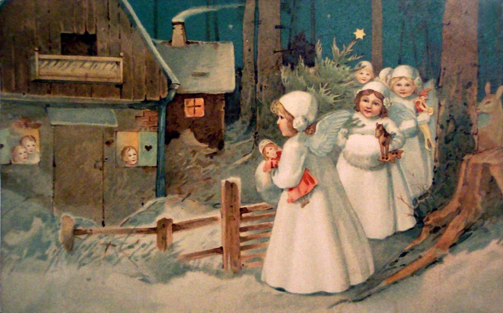 Дореволюционные открытки с Рождеством ангелы