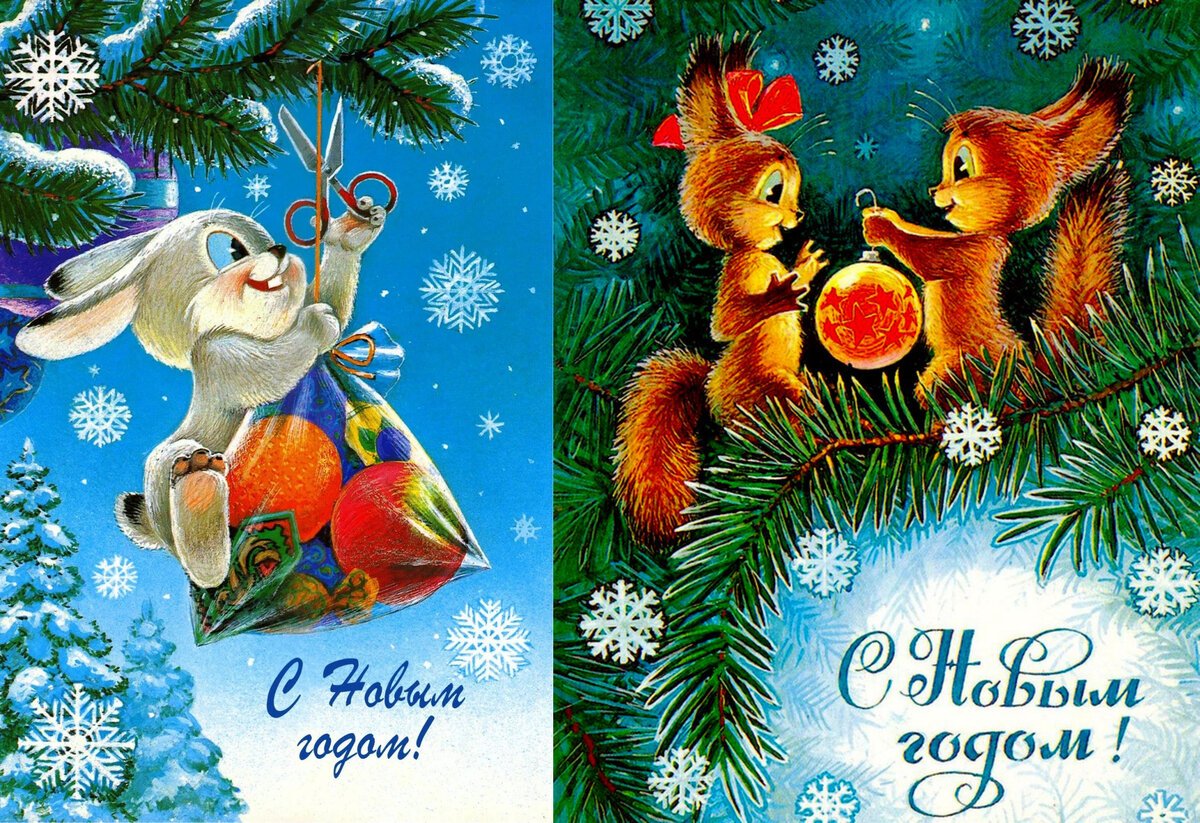 Новогодние открытки с дедом Морозом и Снегурочкой