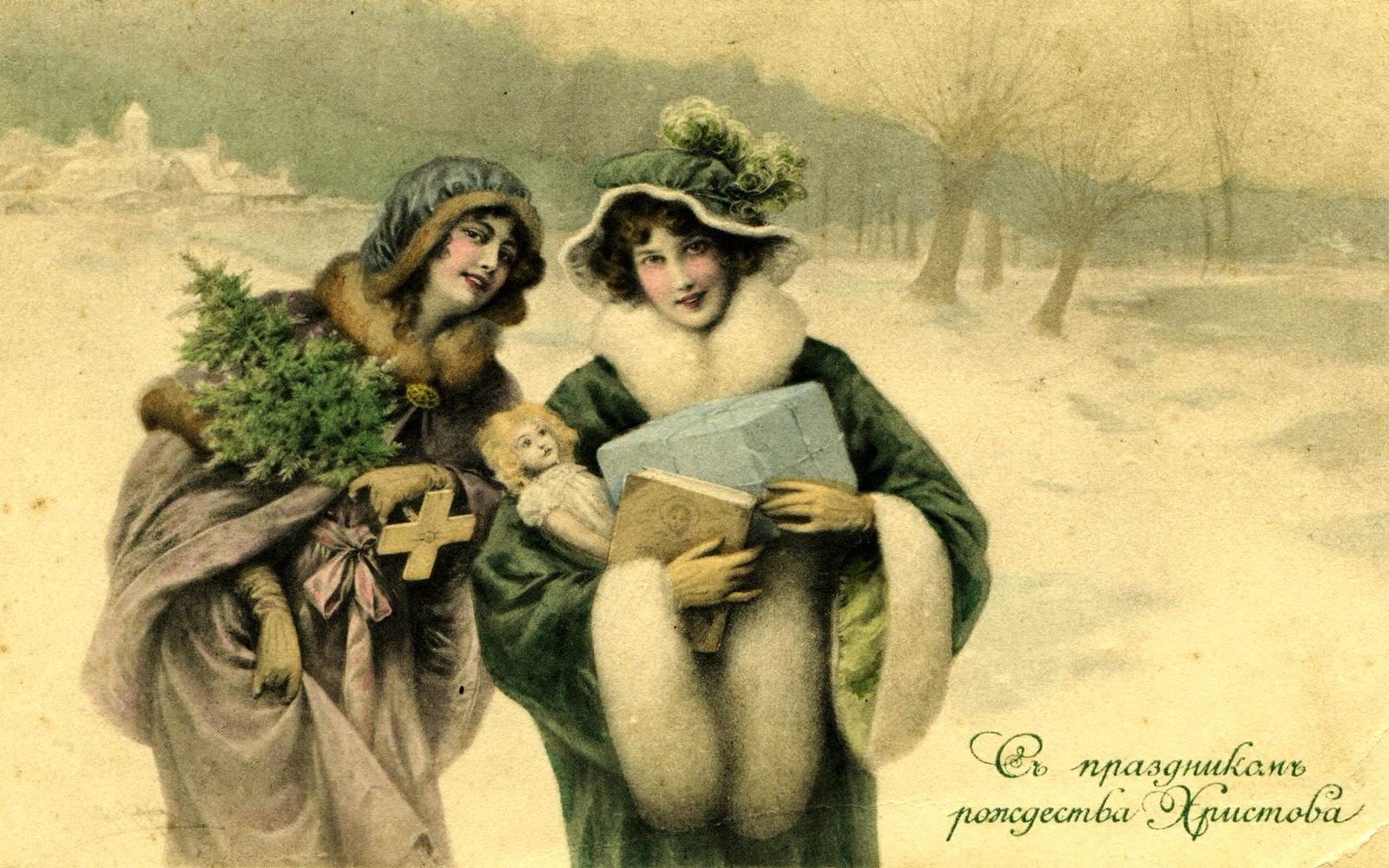 ![Рождественские открытки ретро дореволюционные России]()