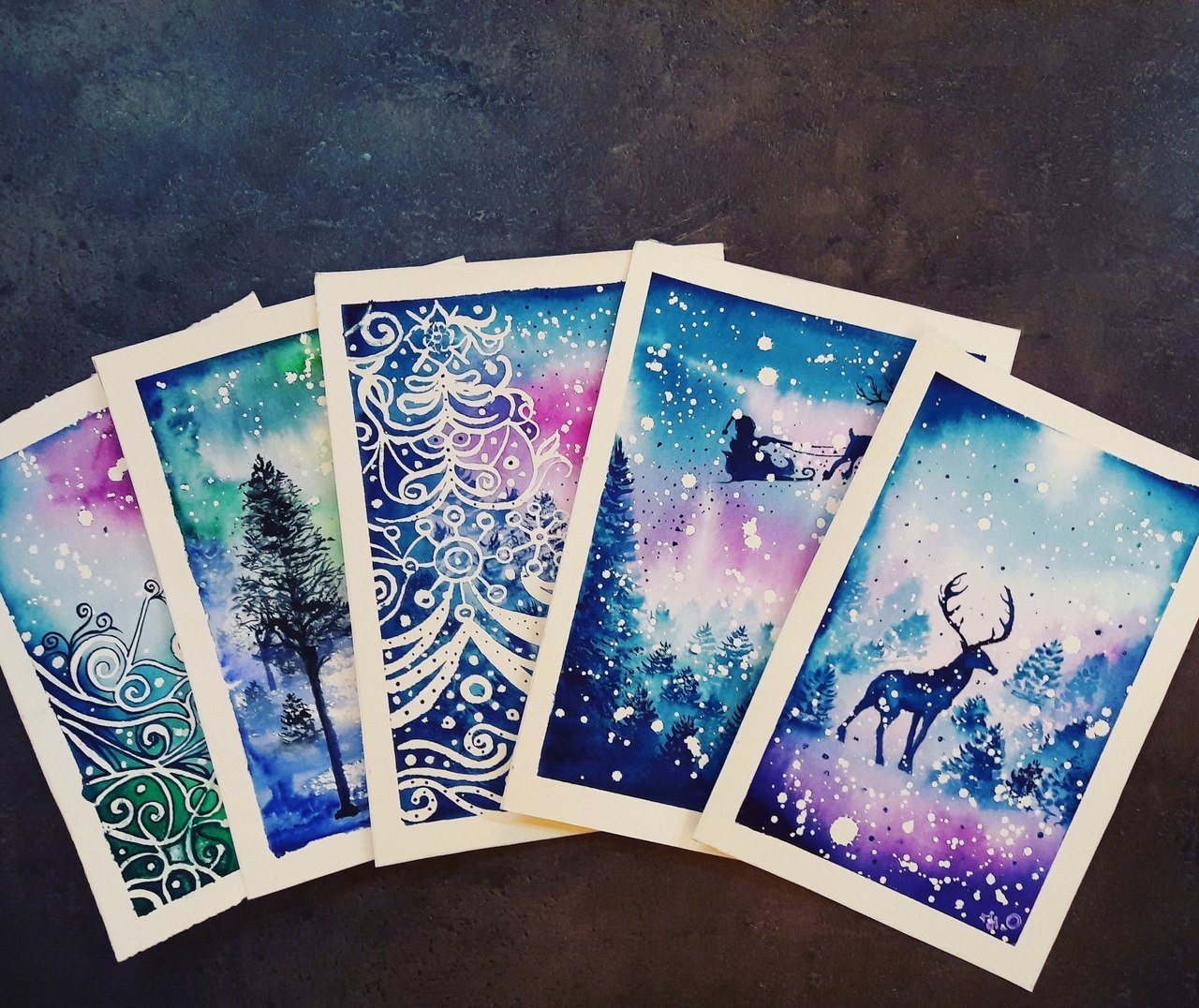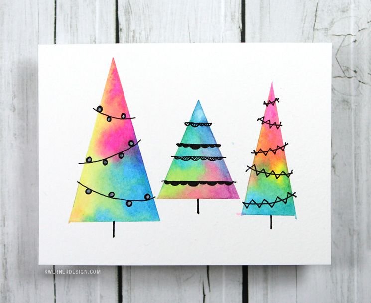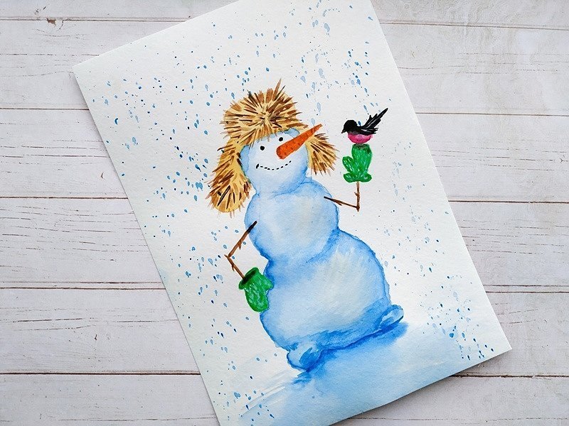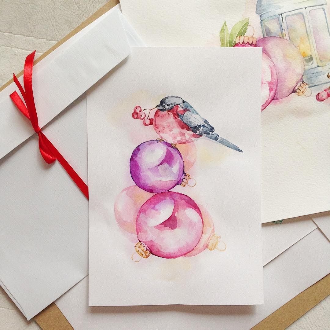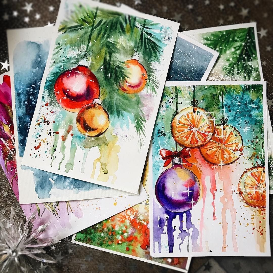 Новогодние открытки своими руками акварелью