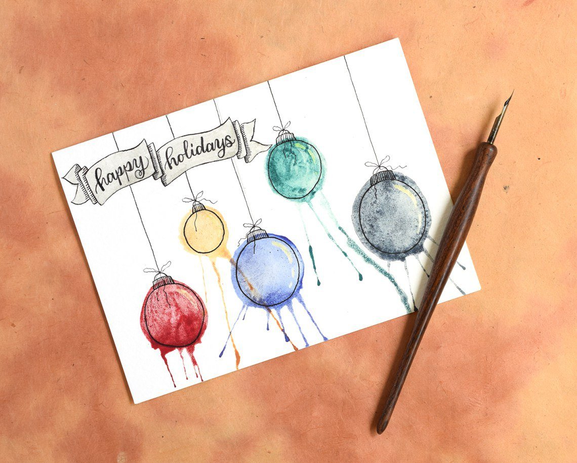 Идеи новогодних открыток акварелью простые