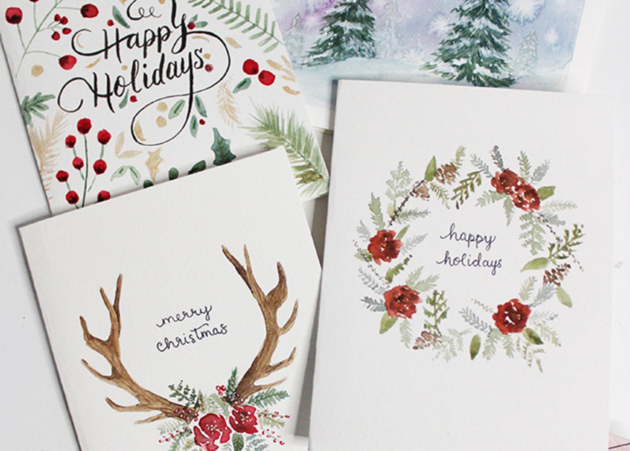 Акварельные новогодние открытки