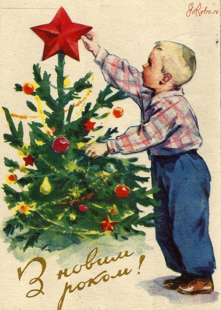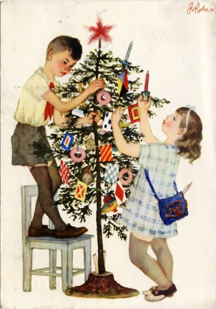 ![Новогодняя елка открытка СССР]()