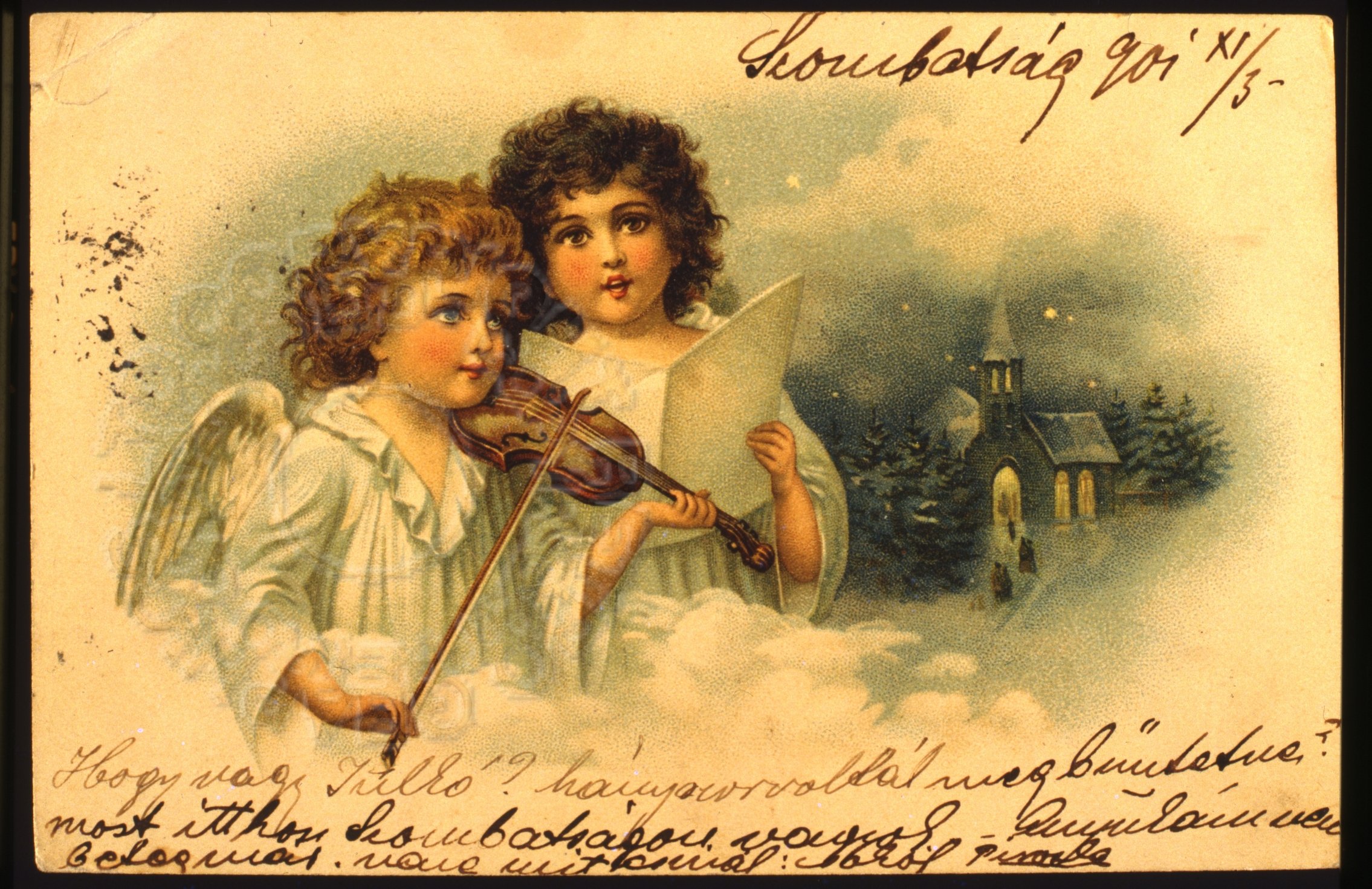 ![Старинные Рождественские открытки с ангелами]()