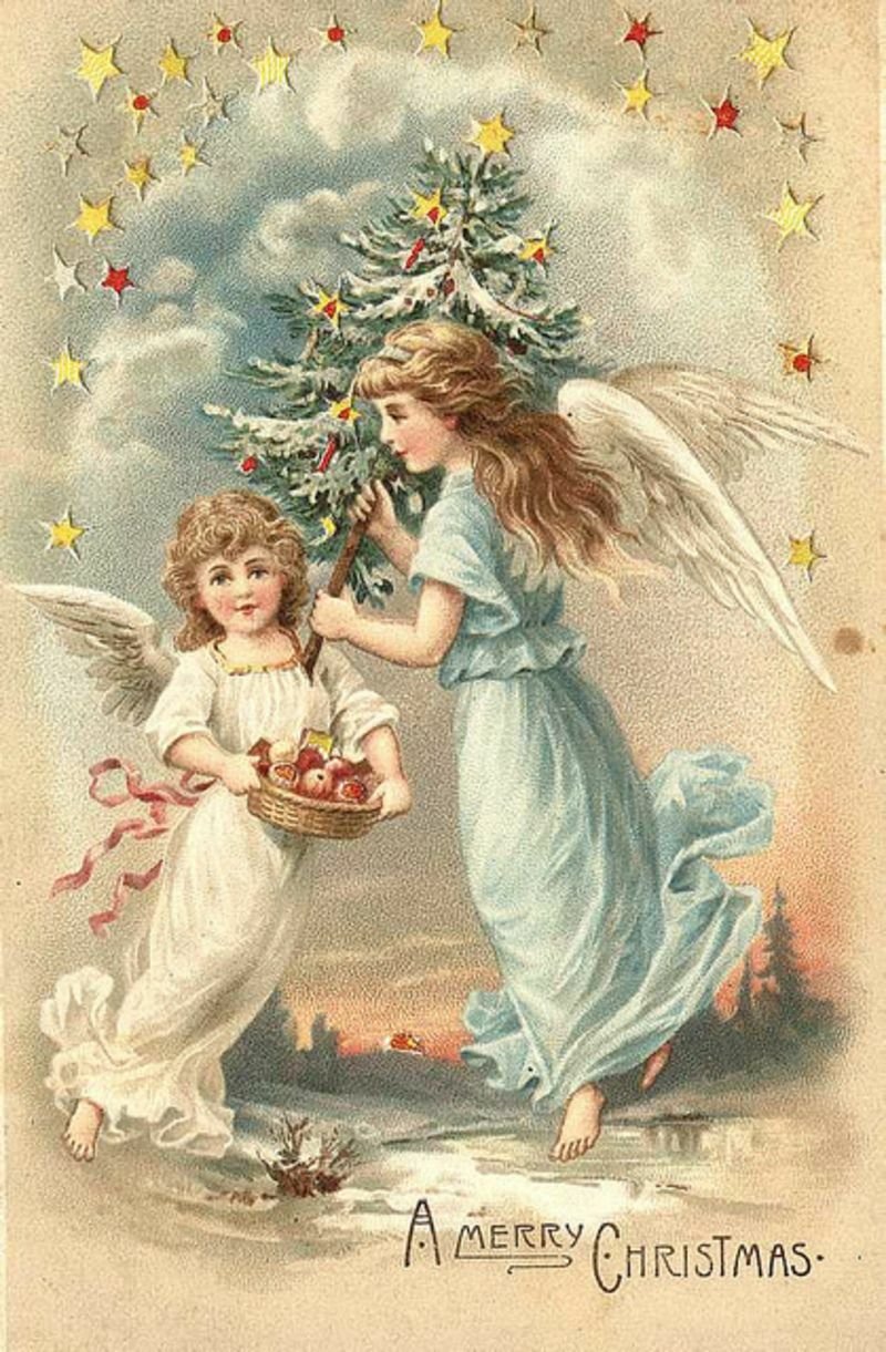 Старинные Рождественские открытки с ангелами