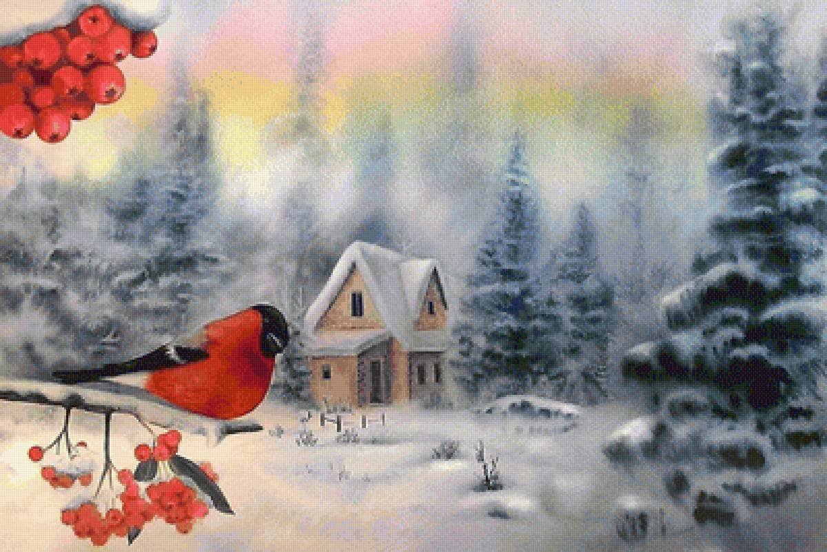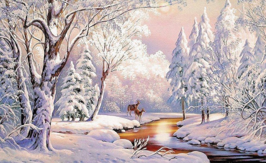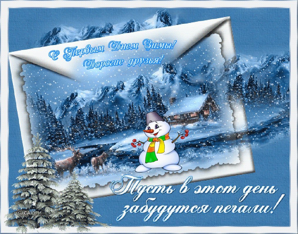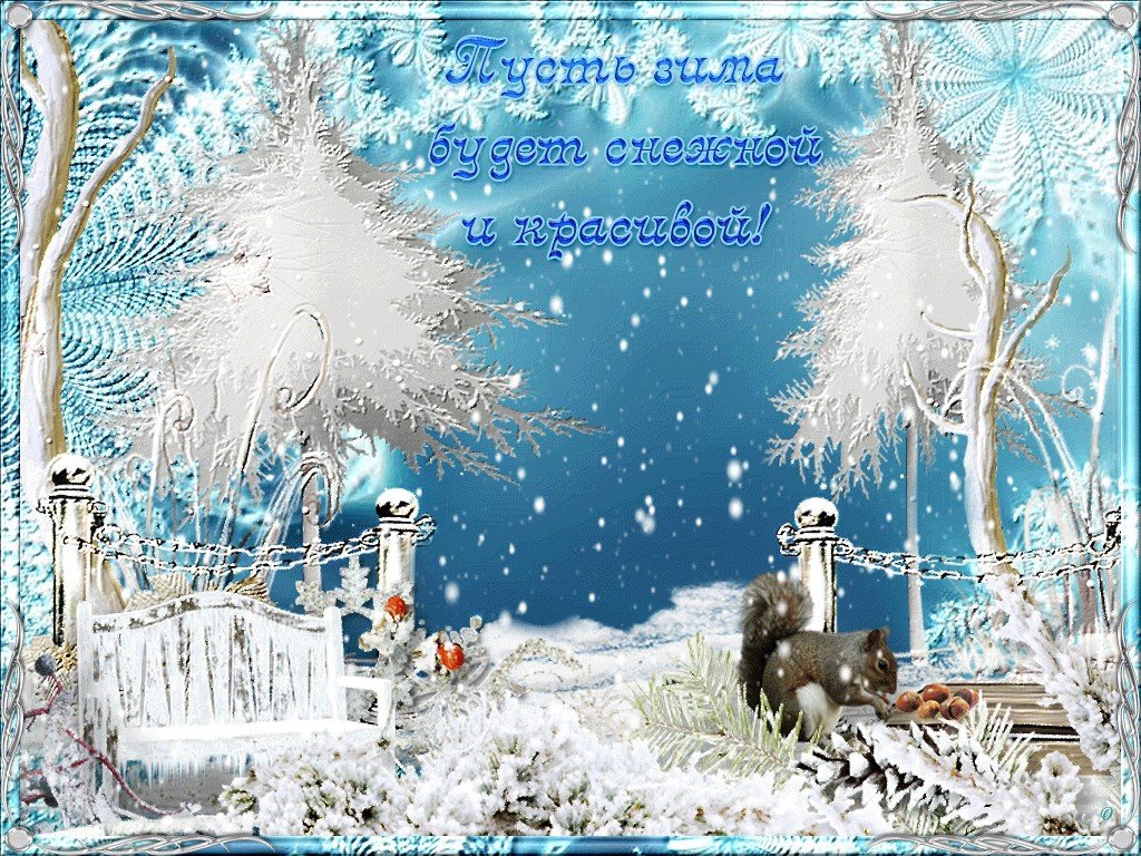 ![Добрые пожелания на фоне зимнего пейзажа]()
