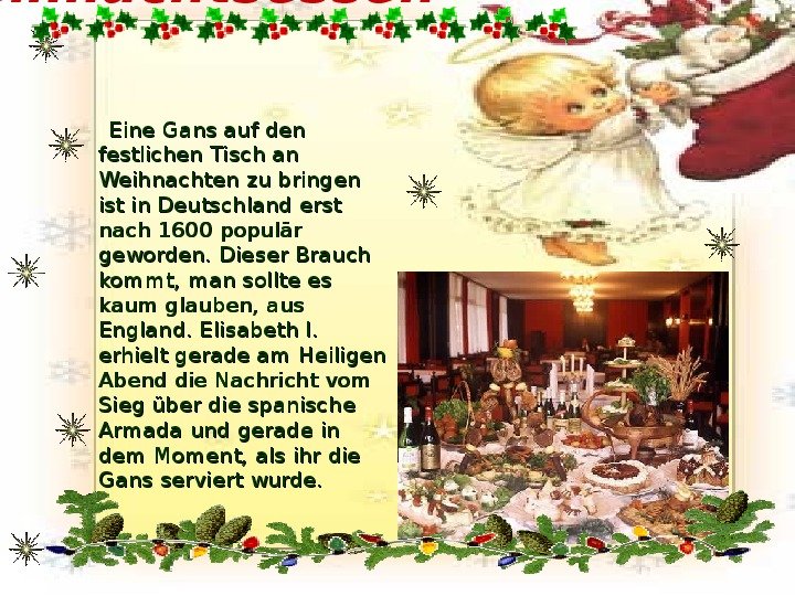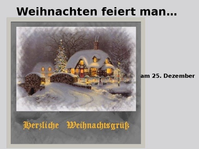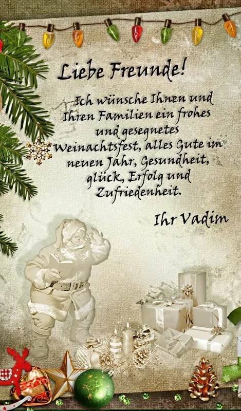 Открытки с сочельником на немецком языке - это прекрасный способ поздравить своих близких и друзей с Рождеством в германском стиле. На этих открытках вы найдете разнообразные новогодние мотивы, символы и пожелания, написанные на немецком языке. Они позволят вам передать вашим близким теплые пожелания, уют и радостную атмосферу праздника. Будь то рисунок с Санта Клаусом или изображение снежинок и елочек, открытки с сочельником на немецком языке станут прекрасным подарком как для носителей этого языка, так и для всех, кто ценит оригинальные и красивые поздравления на Рождество.