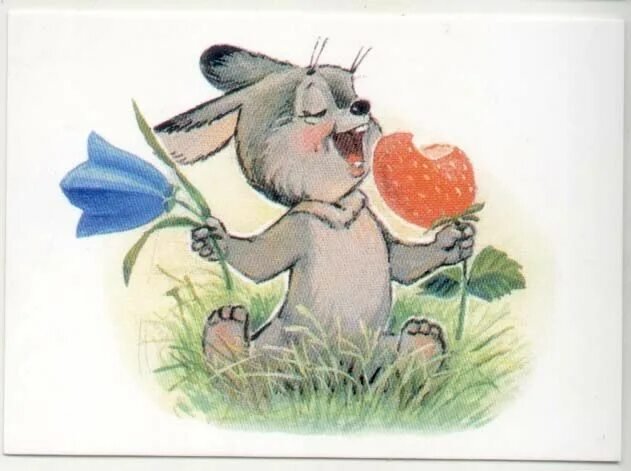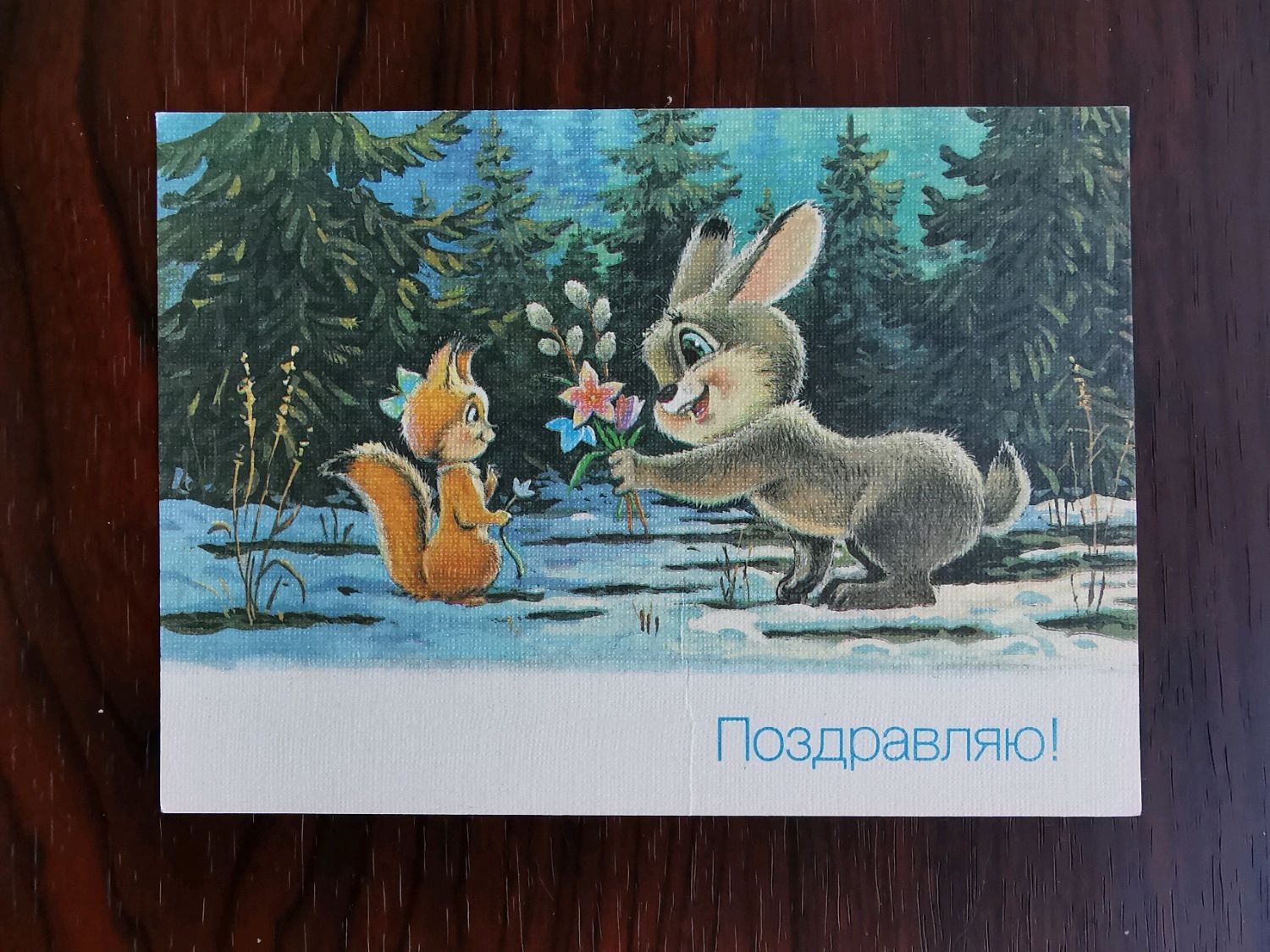 ![Советская открытка Медвежонок и Зайка Зарубин]()