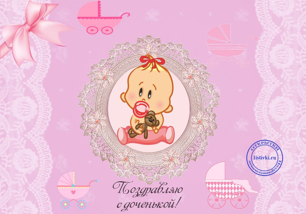 ![Открытка с рождением дочери]()