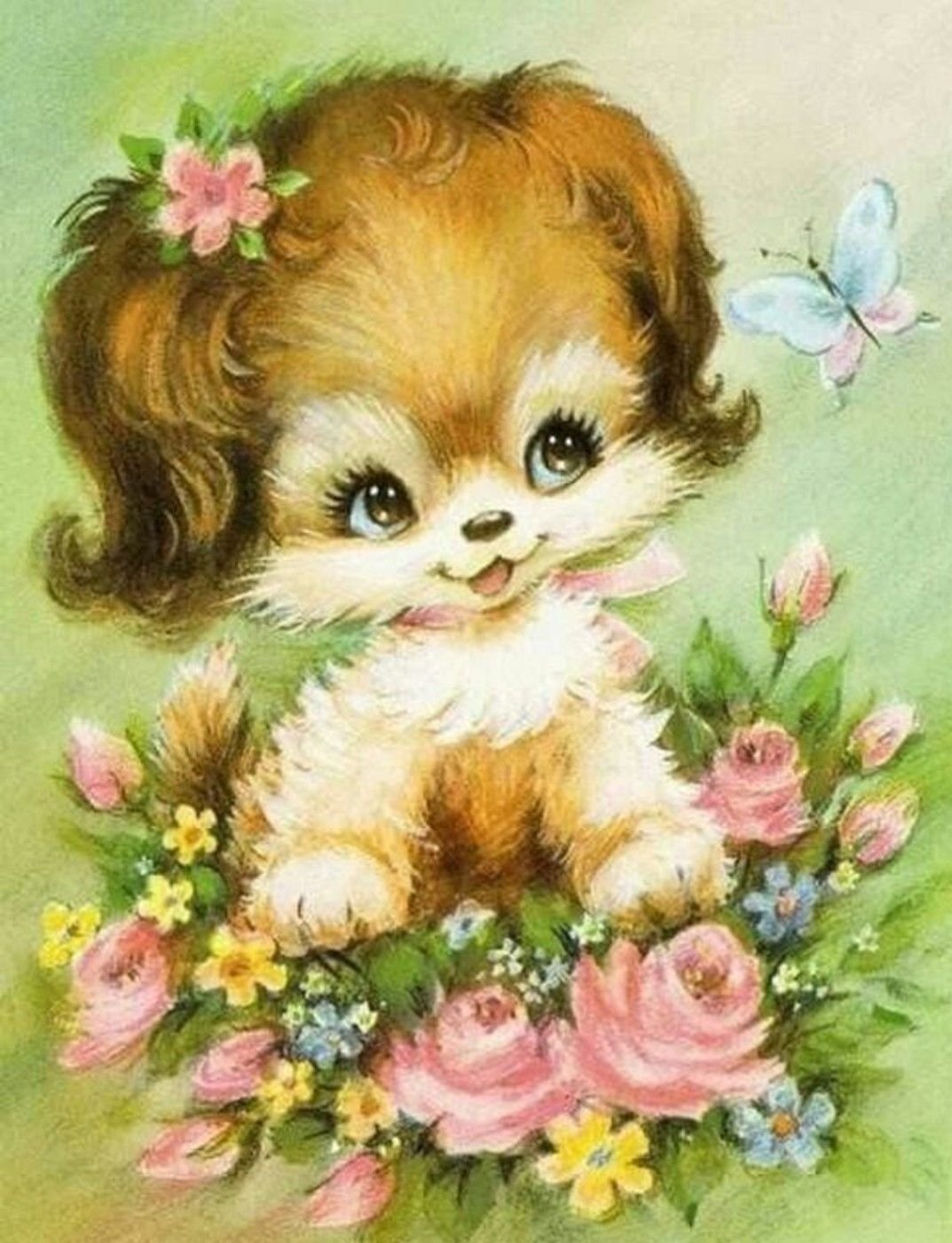 СкачатьОткрытки собачки с цветами