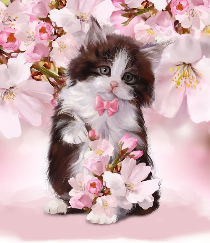 СкачатьКотенок в цветах