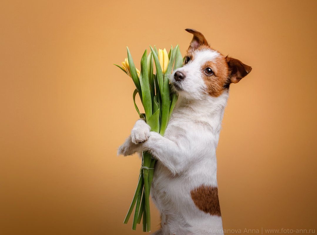 СкачатьСобака с цветами в зубах