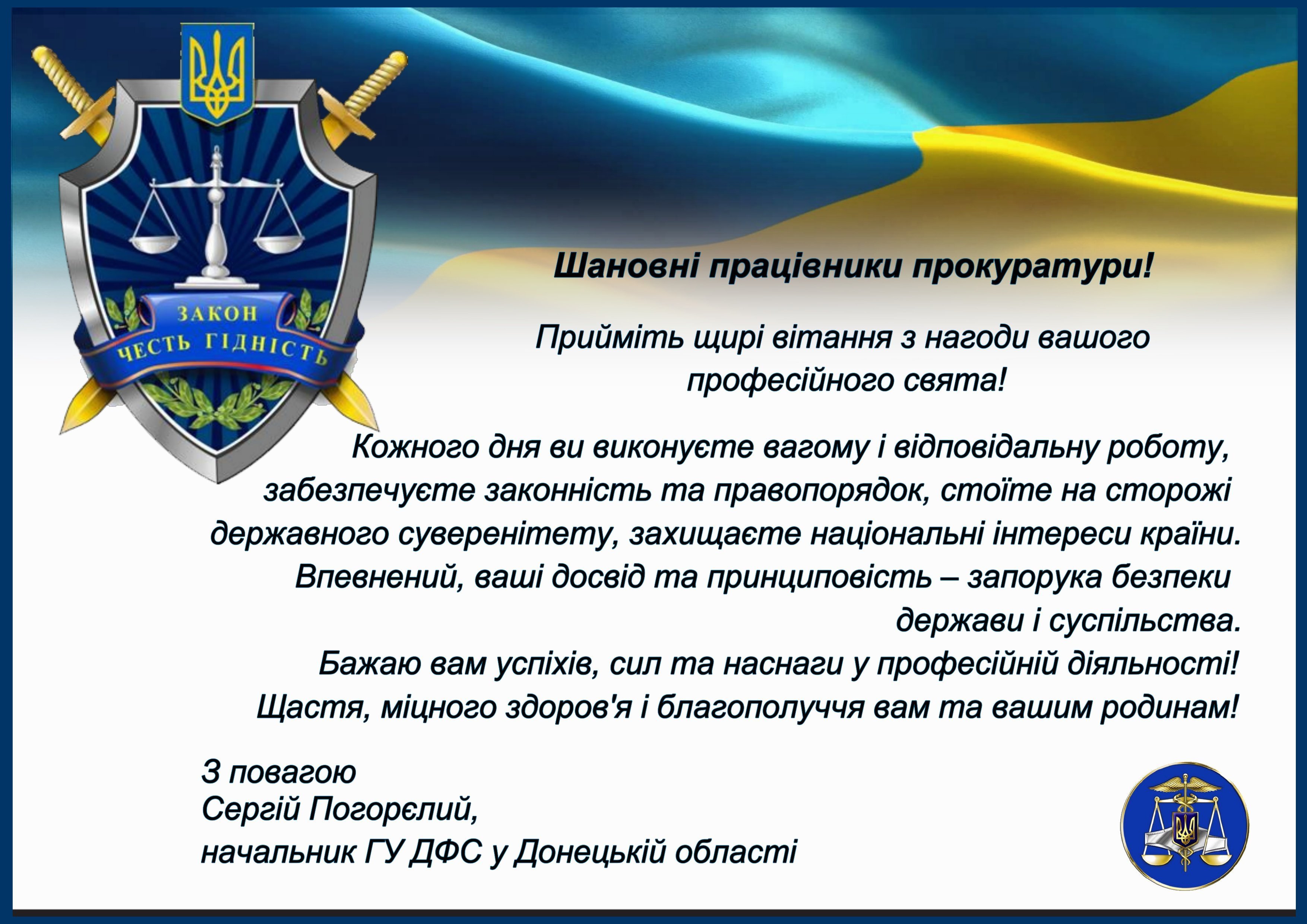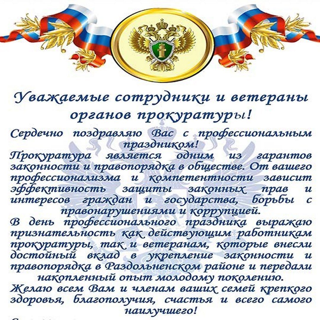 Поздравление с днем работника прокуратуры официальное