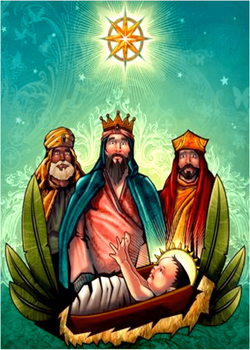 ![Волхвы и царь Ирод и Рождественская звезда]()
