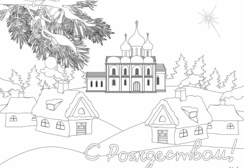 Рождественский храм раскраска
