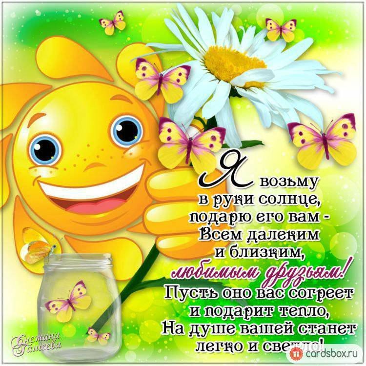 Открытки с позитивными пожеланиями - это маленькие кусочки доброты, которые можно подарить близким и друзьям. Они являются прекрасным способом выразить свою любовь, благодарность или поддержку кому-то особенному. Благодаря ярким и красочным иллюстрациям, они воспевают радость и оптимизм, приносят улыбку на лица и радуют сердца получателей. Открытки с позитивными пожеланиями могут стать незаменимым подарком на различные праздники, а также важными напоминаниями о том, что мы заботимся о людях, которые нам дороги.