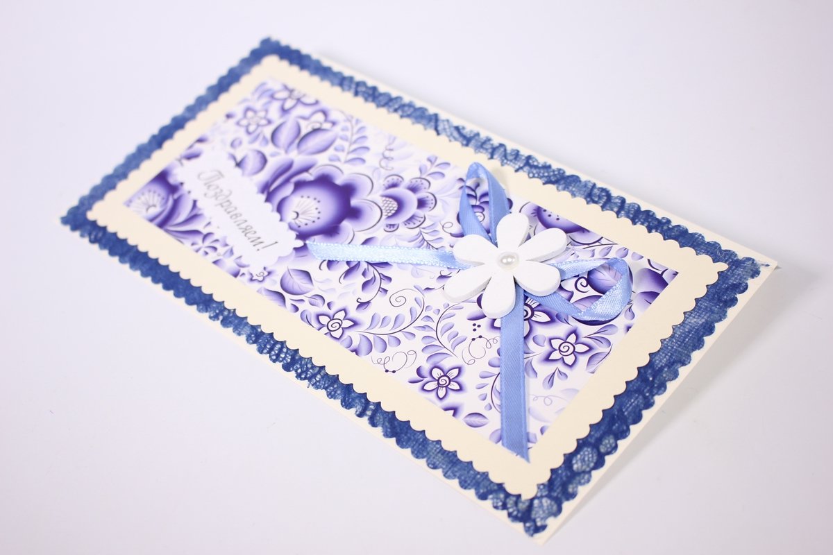 Открытка своими руками в стиле Гжель