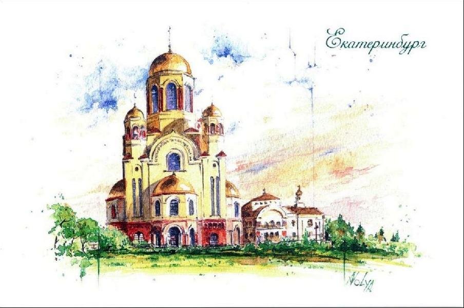 ![Храм на крови Екатеринбург акварель]()
