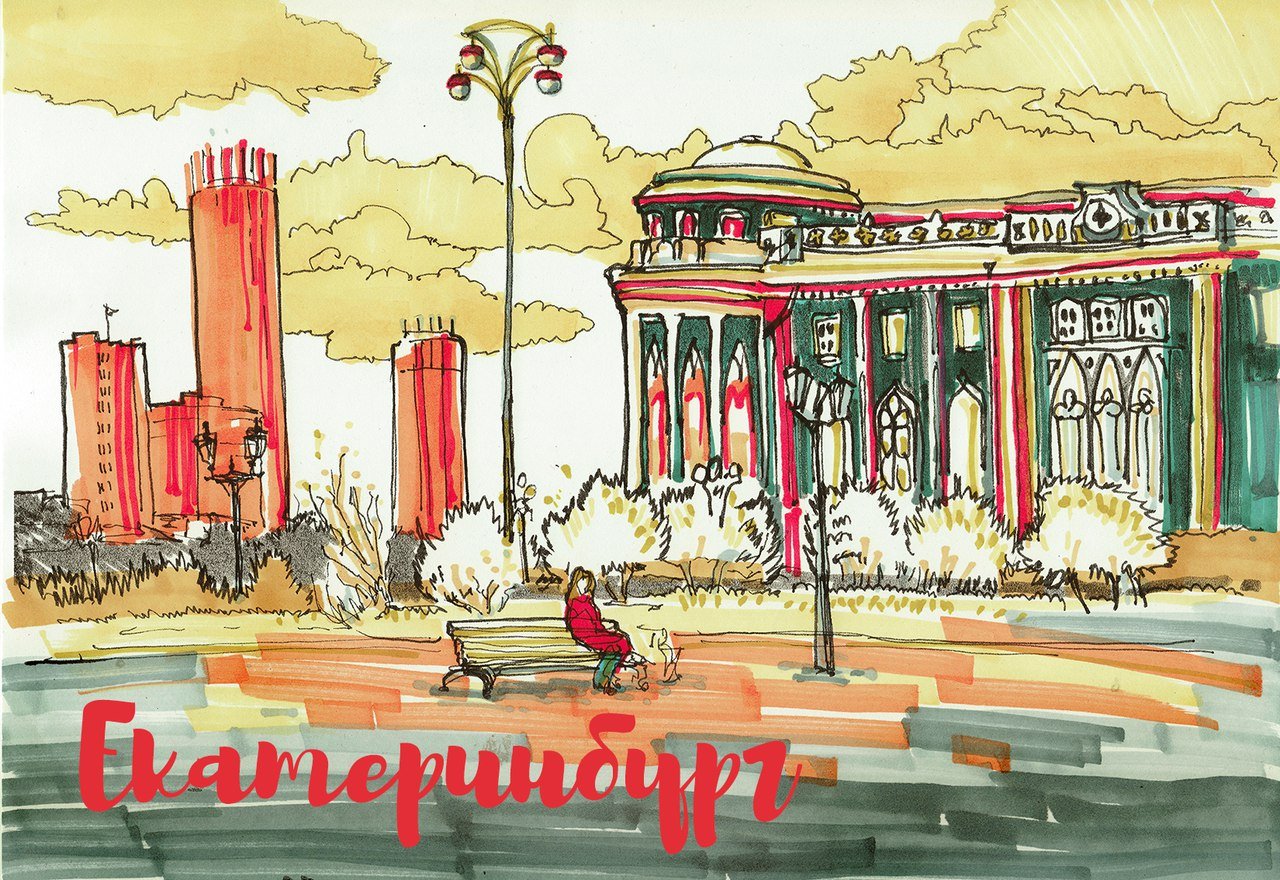 ![Здания Екатеринбурга рисунок]()