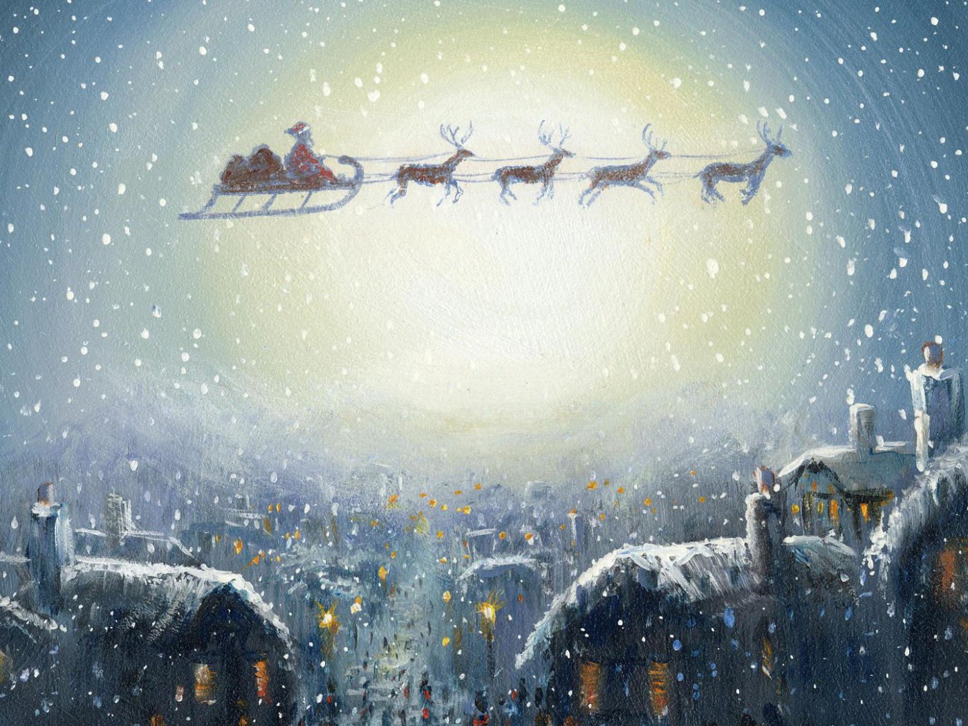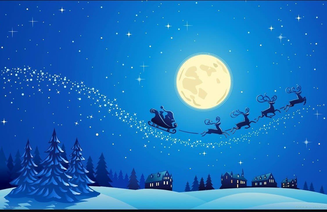 ![Сани Санты в небе]()