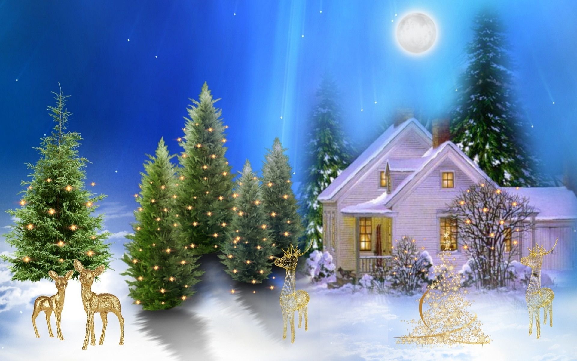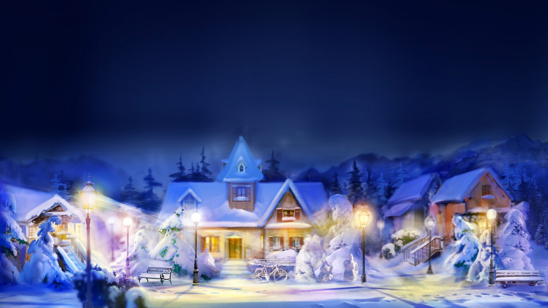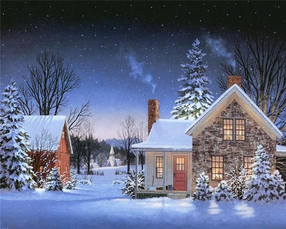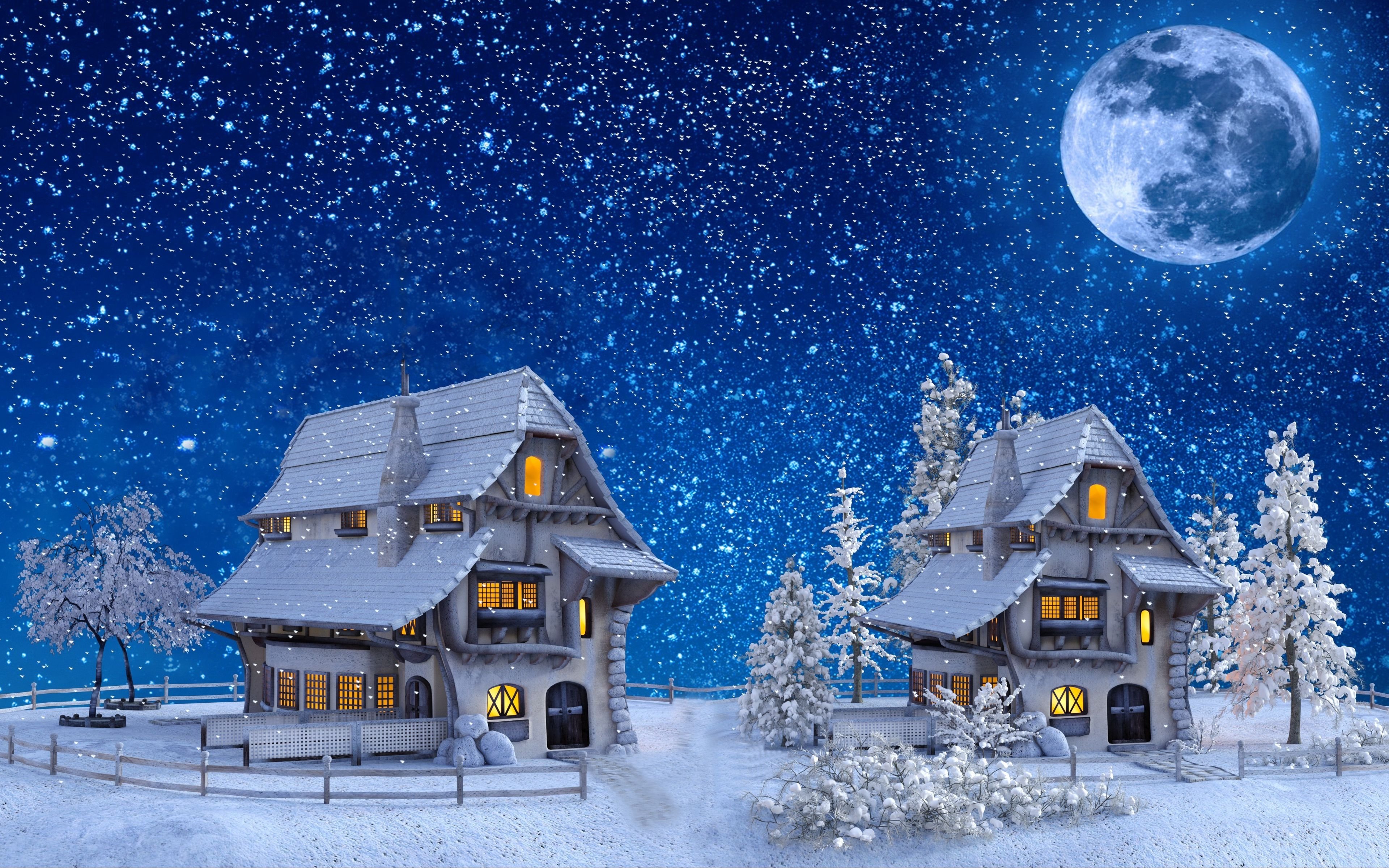 ![Новогодний пейзаж ночь]()