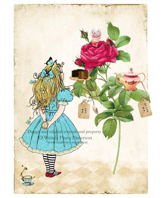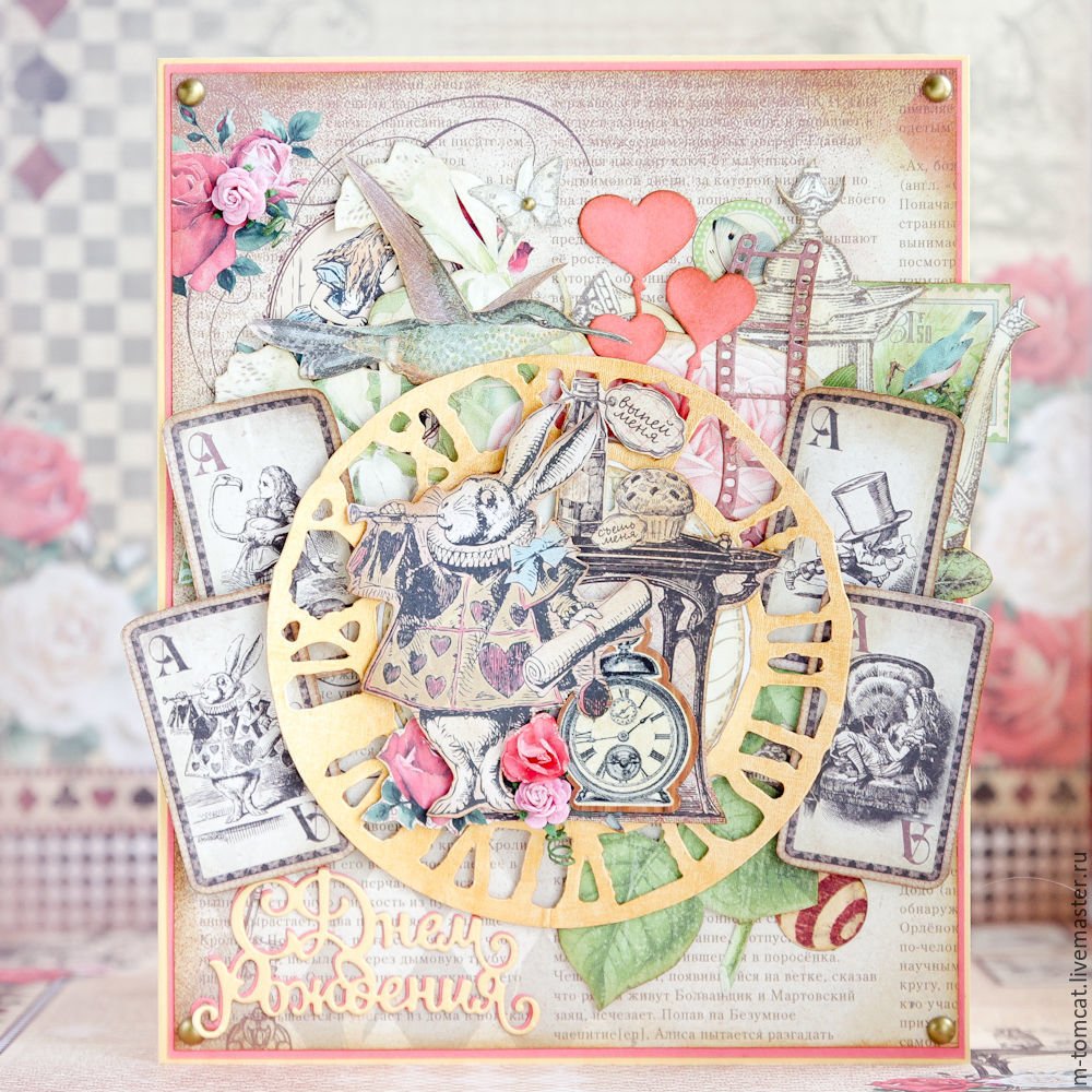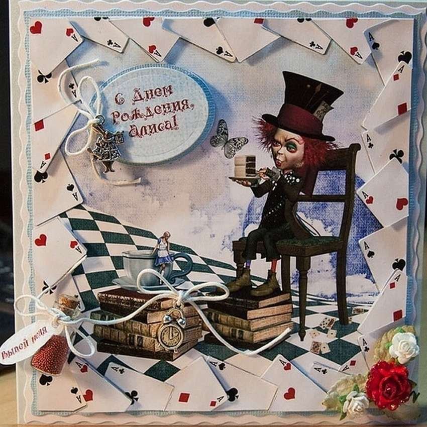 ![Алиса в стране чудес открытка Скрапбукинг]()