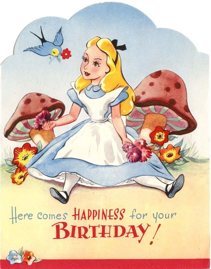 ![Алиса в стране чудес открытка с днем рождения]()