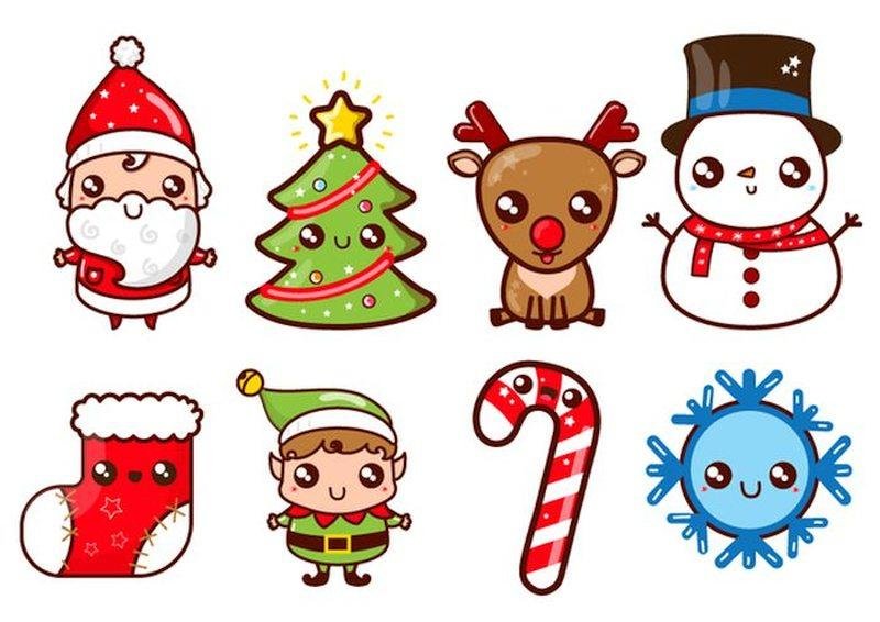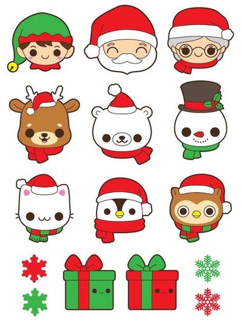 Кавайные новогодние наклейки