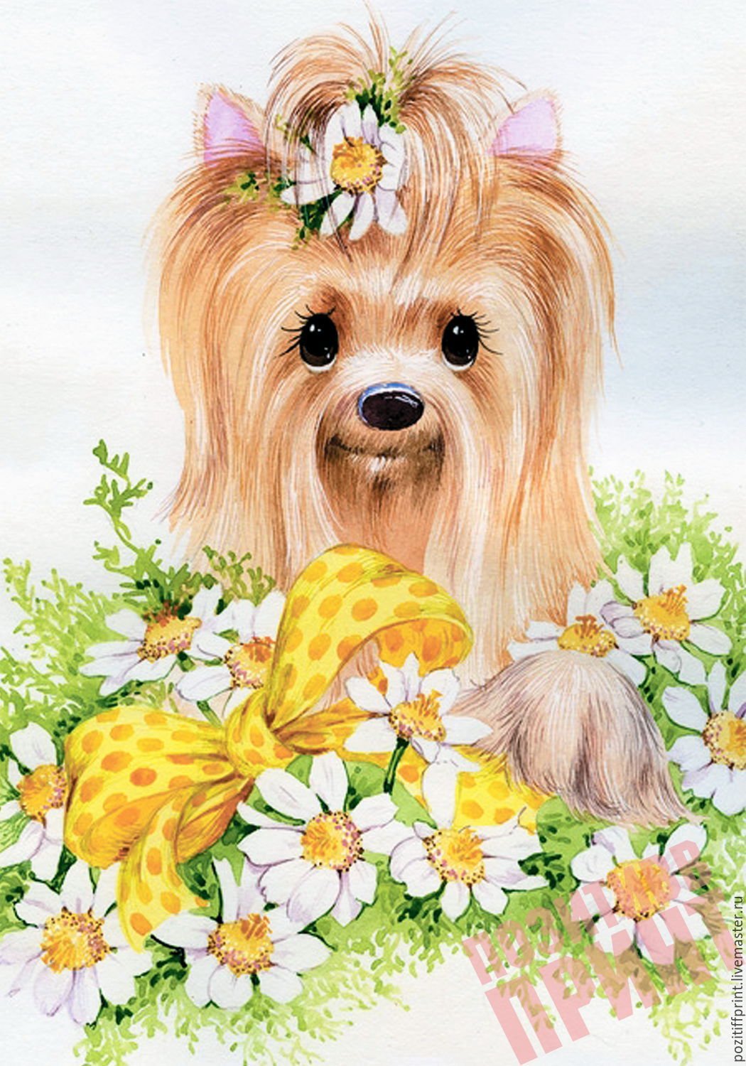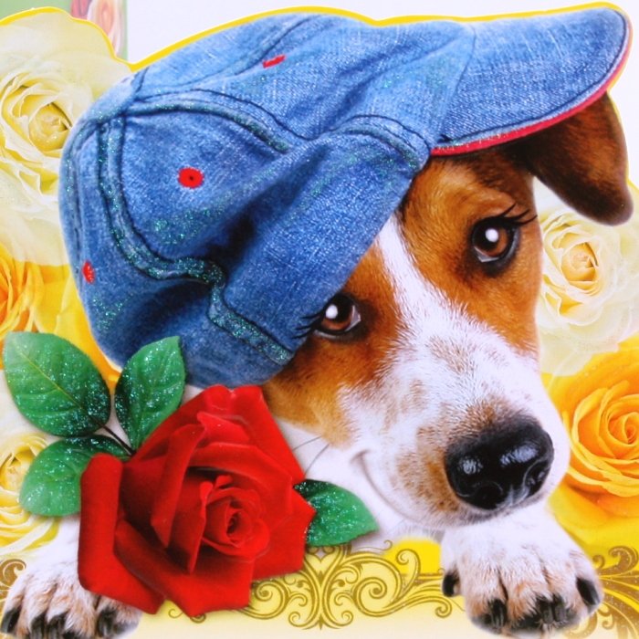 Открытки собачки с цветами