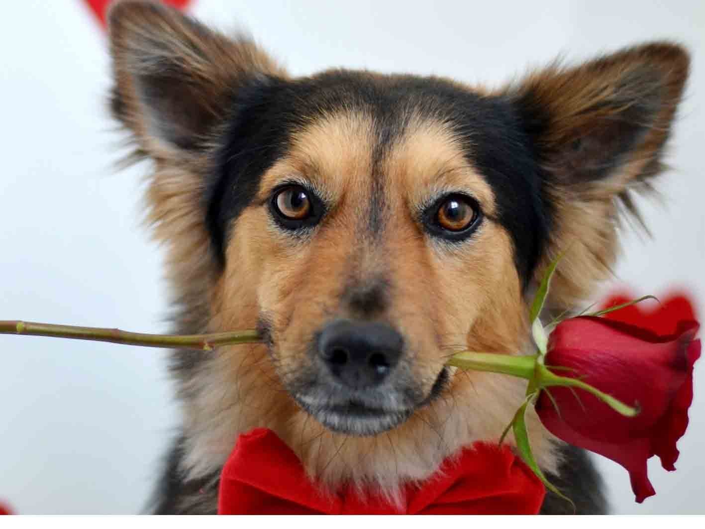 ![Собака с розой в зубах]()