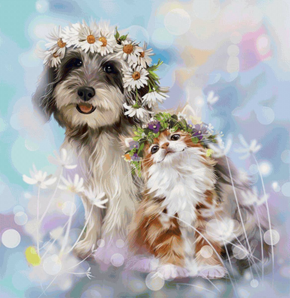 ![Собака с цветами картинки]()