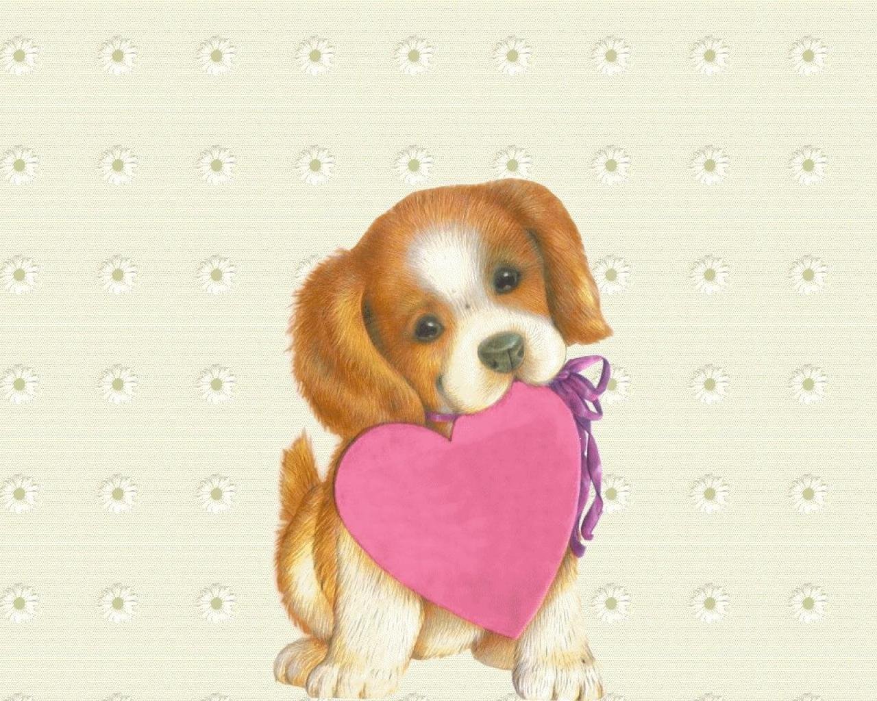 ![Милый щенок с сердечком]()