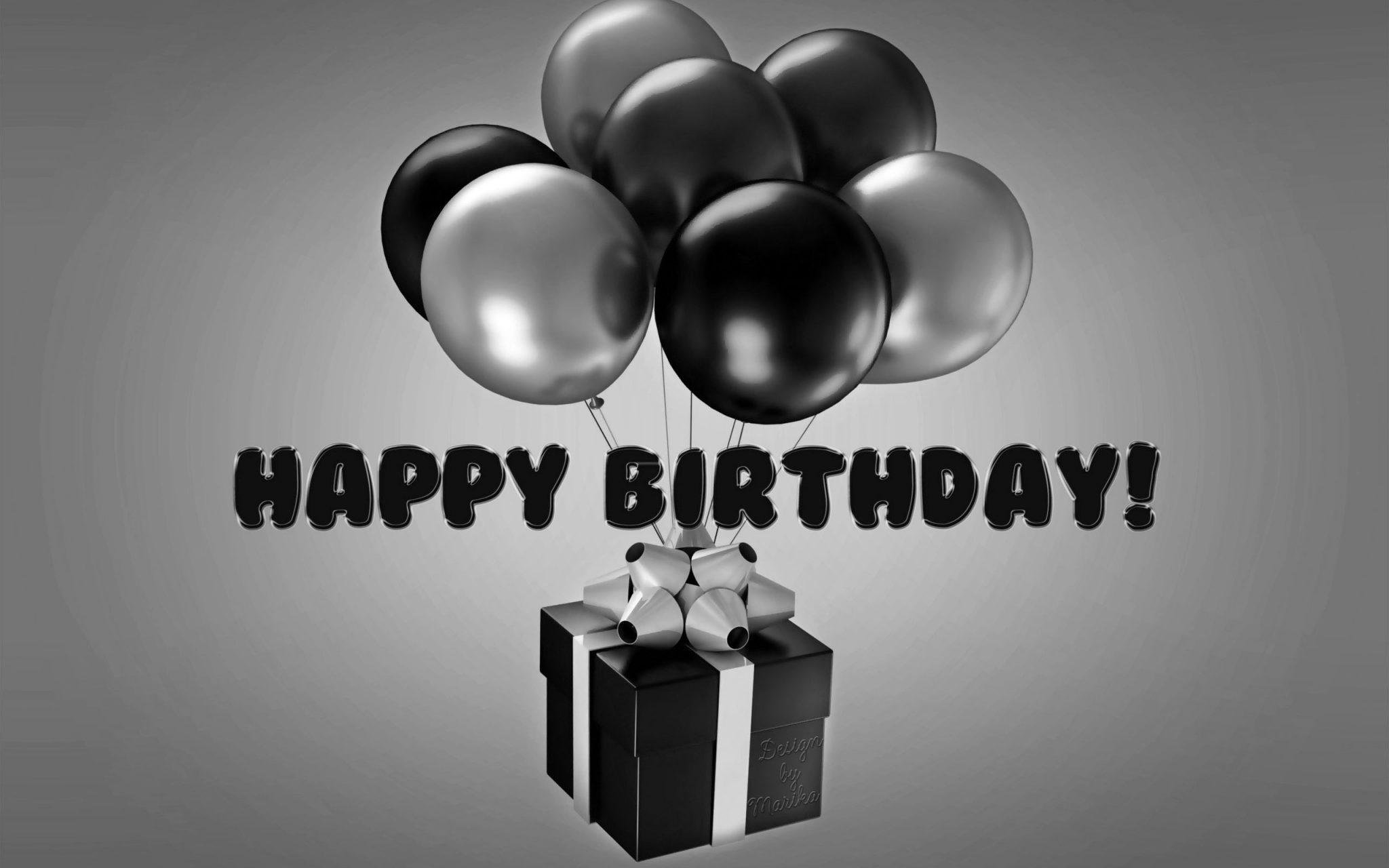 Черно белая открытка с днем рождения