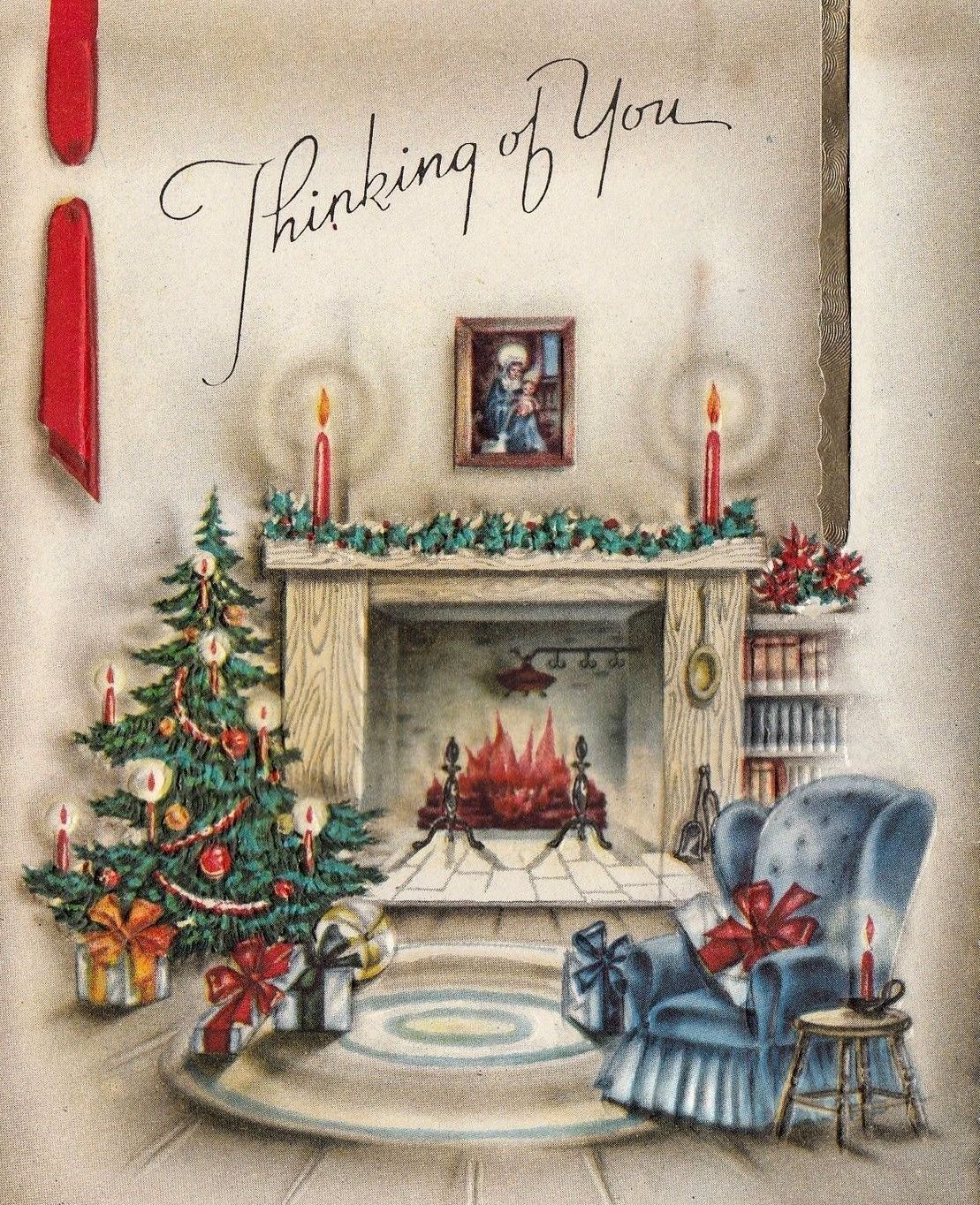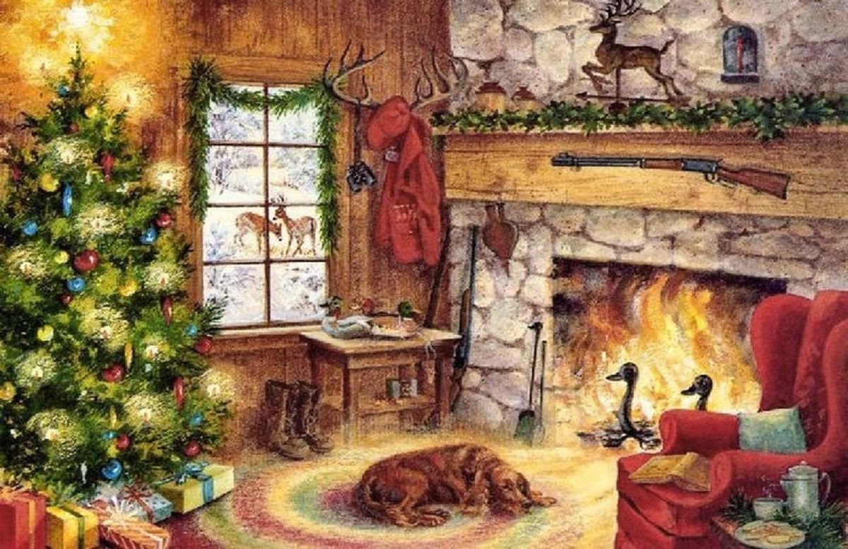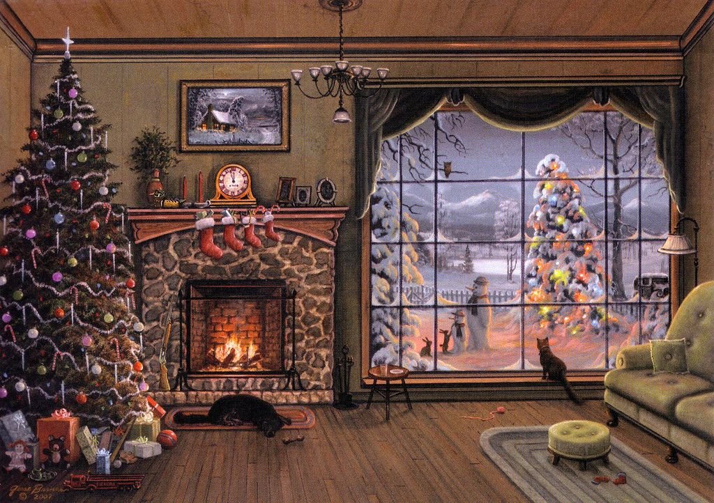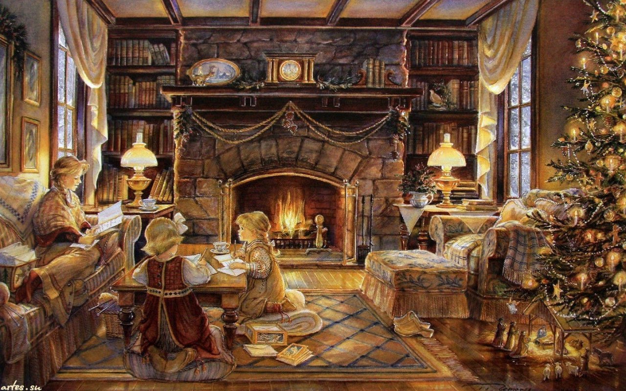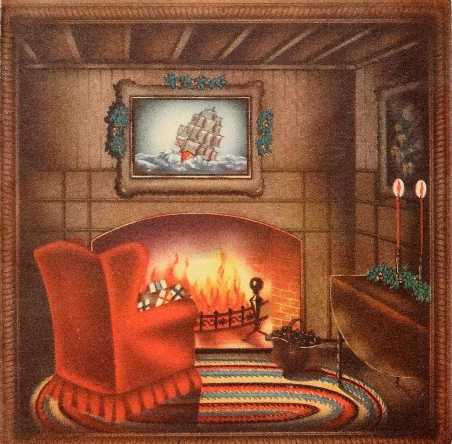 ![Открытка у камина]()