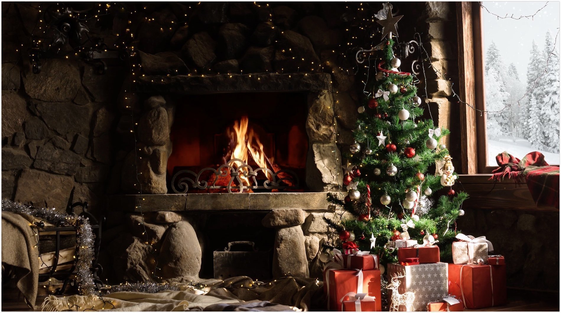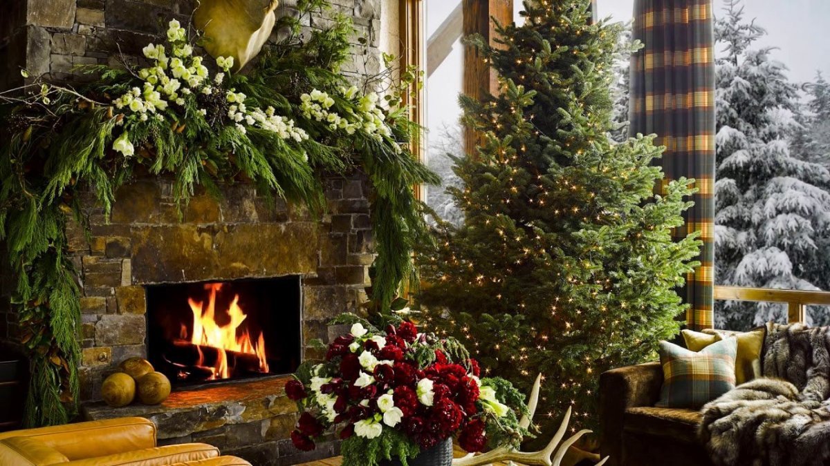 ![Новогодняя комната с камином]()