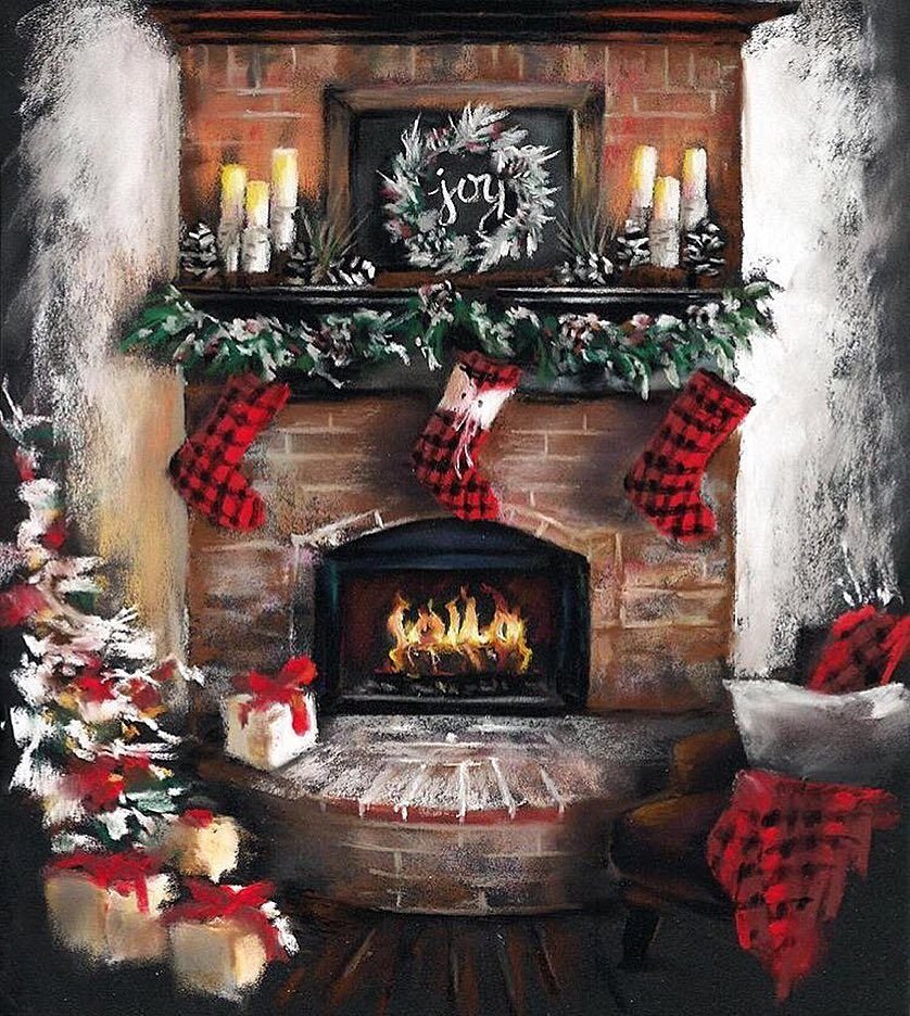 ![Новый год акварель камин]()