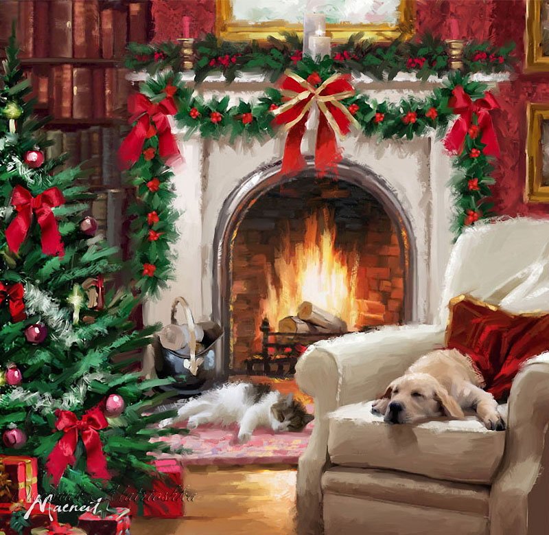 ![Ричард Макнейл художник новогодние коты]()