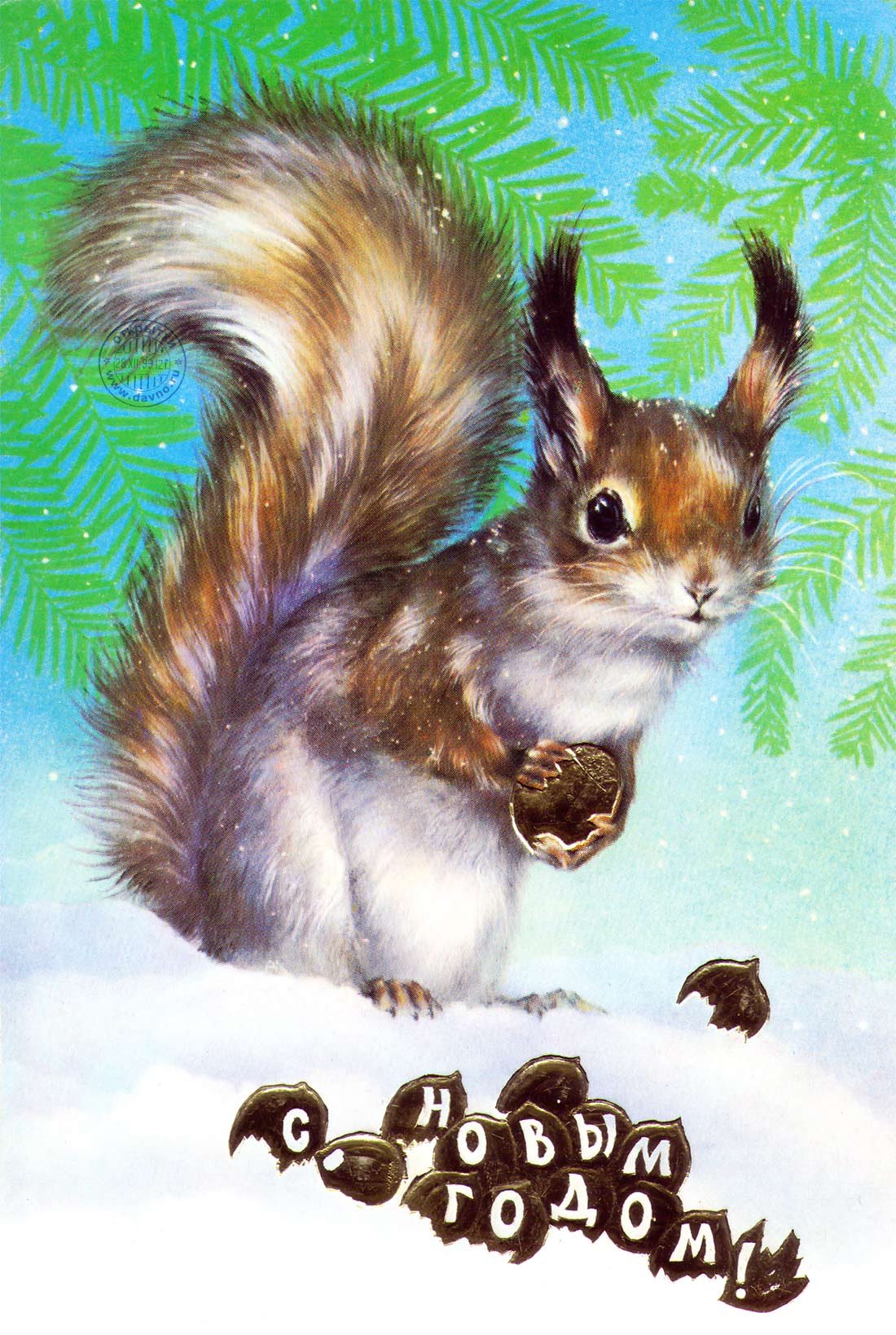 ![Новогодняя открытка белка]()