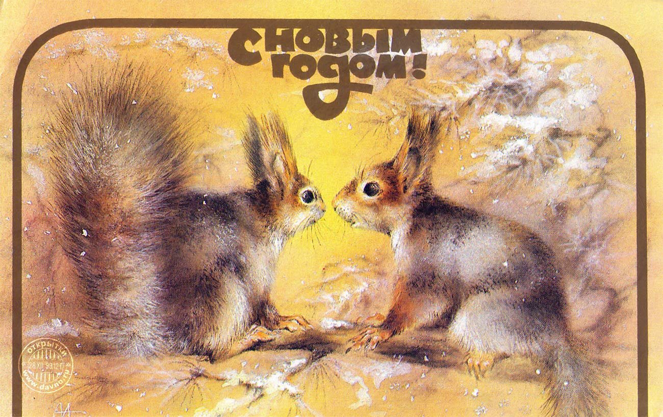 ![Советские открытки с белочками]()