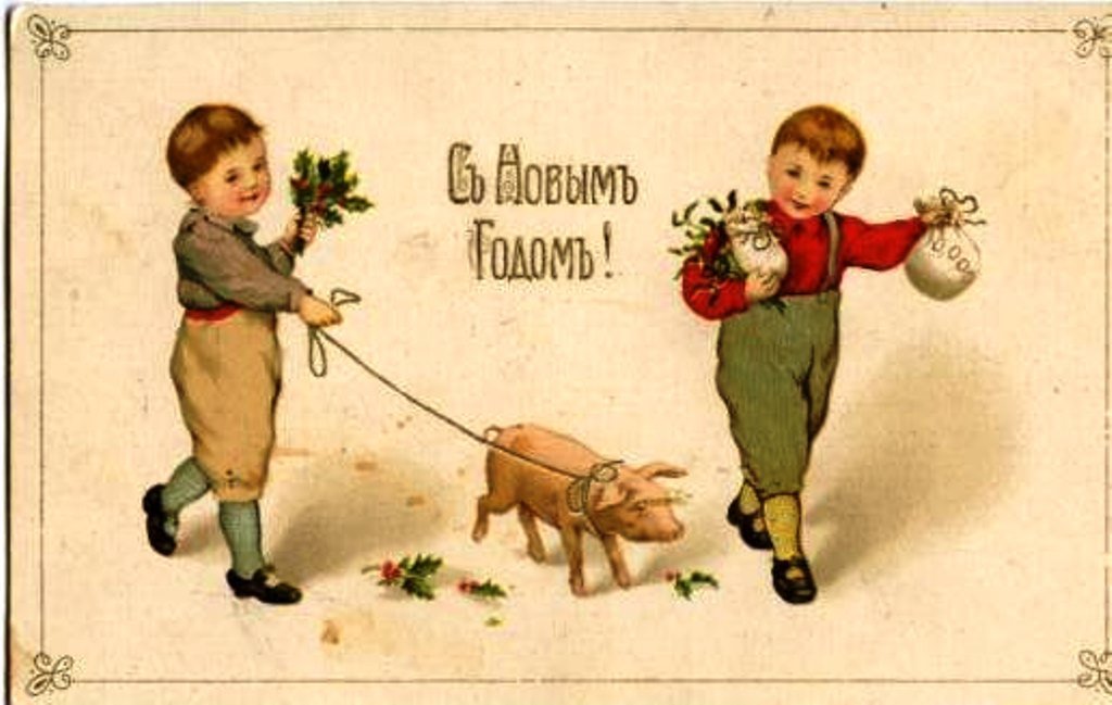 Новогодние дореволюционные открытки со свиньей