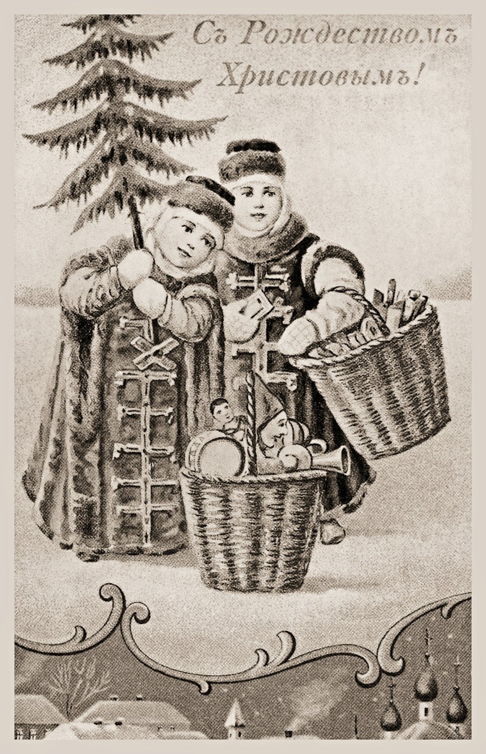 Дореволюционные новогодние открытки с детьми
