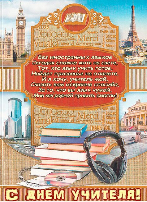 Уважаемый учитель английского языка! Открытка, которую я хочу передать вам, невозможна без слов благодарности и признания вашего труда. Вы сияете своим профессионализмом и преданностью обучению, вдохновляя нас учиться и расти. Ваши уроки не только расширяют наш словарный запас, но и пробуждают в нас интерес к изучению английского языка. Благодаря вашему терпению и доброте мы чувствуем себя комфортно и уверенно в процессе обучения. Вы – настоящий гуру, который помогает нам освоить новые знания и навыки. Просто хочу поблагодарить вас за ваше преданное служение и отдельно подчеркнуть вашу способность вдохновлять нас быть лучше. Спасибо за все, что вы делаете для нас, уважаемый учитель английского языка!