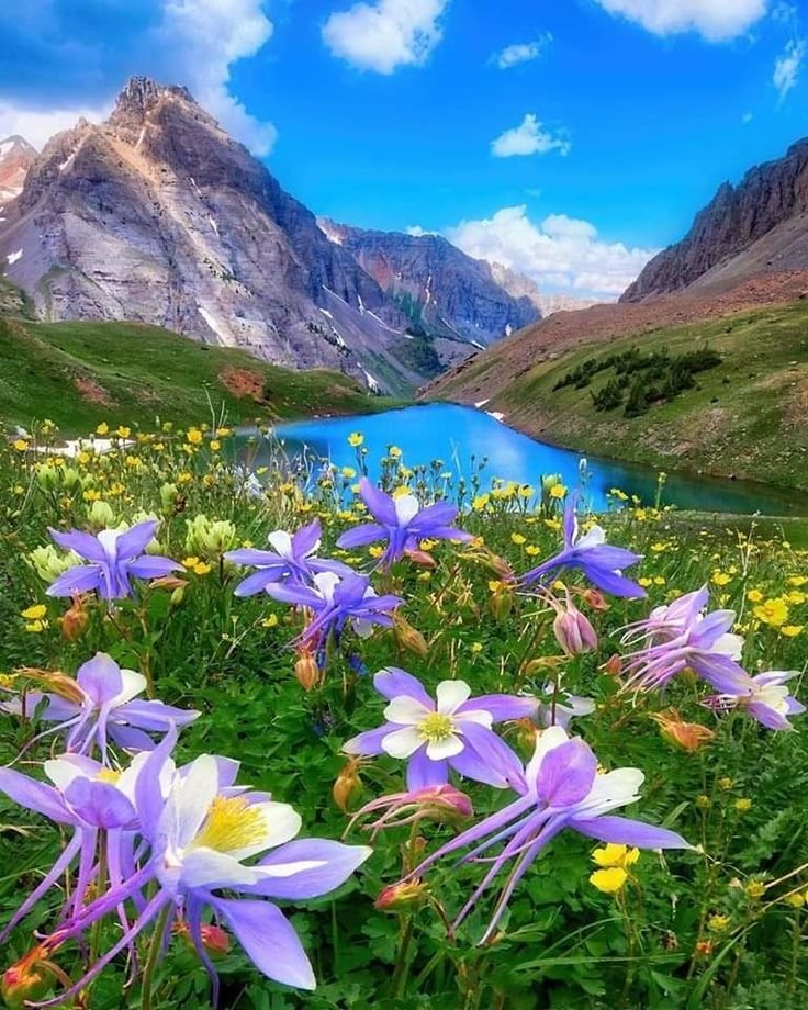 ![Цветы на фоне гор]()