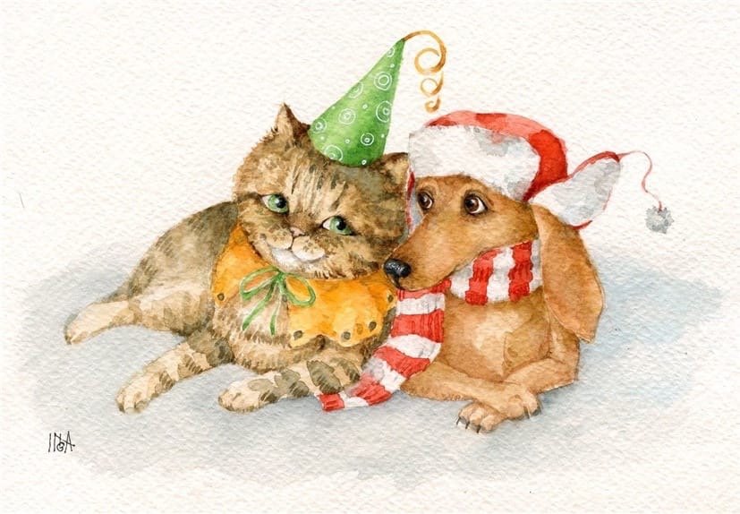 Новогодние иллюстрации с котами и кроликами